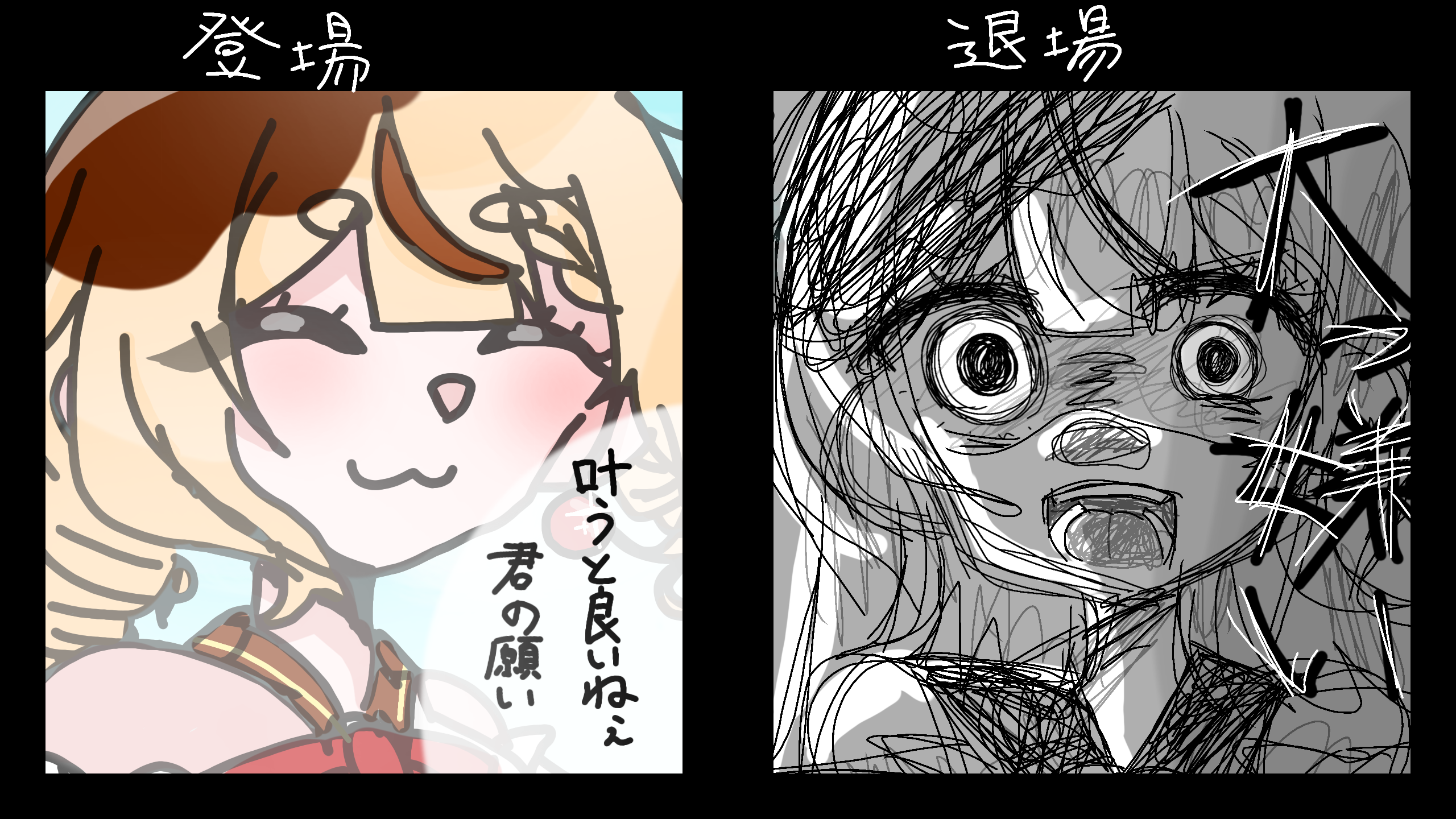 ええええありがとうございます!登場は爽やかで仲間かな?って感じだけど退場は結構強めで主人公のこと本当に嫌ってるタイプですね...!絵柄で違い表現できるの凄すぎますよ!尊敬します!めっちゃ流行らせたいですから他のocとかでも是非やってくださいね!