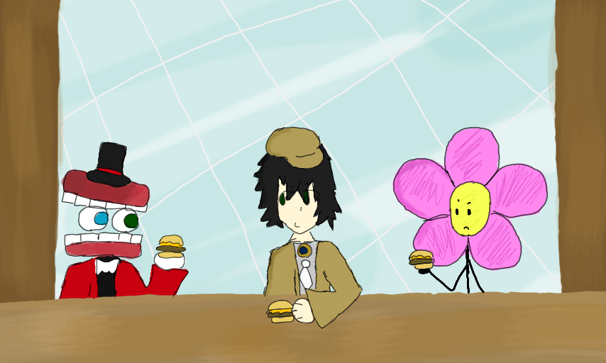 RANPO, CAINE AND FLOWER EATIN' KRABBY PATTIES AT THE KRUSTY KRAB AYOOO