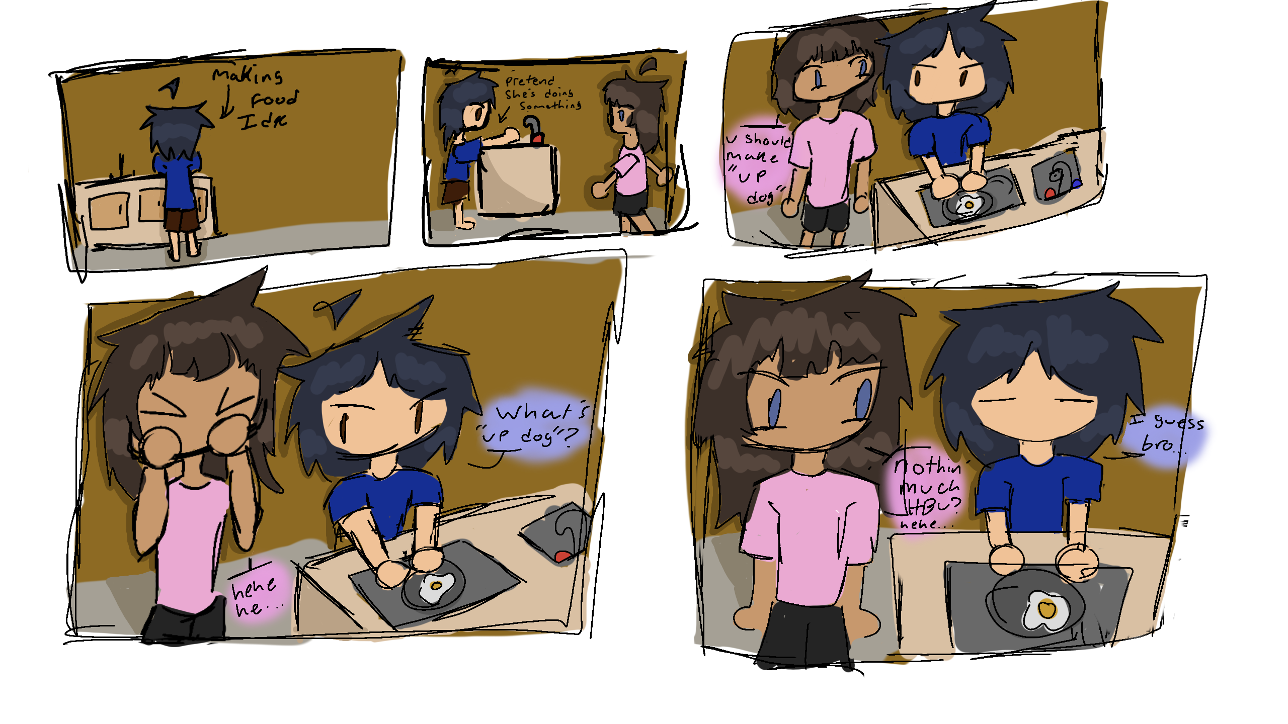 this is how i think my OC's would interactmonica: the one w/ blue eyes and brown haircoraline: the one w/ black hair and brown eyes