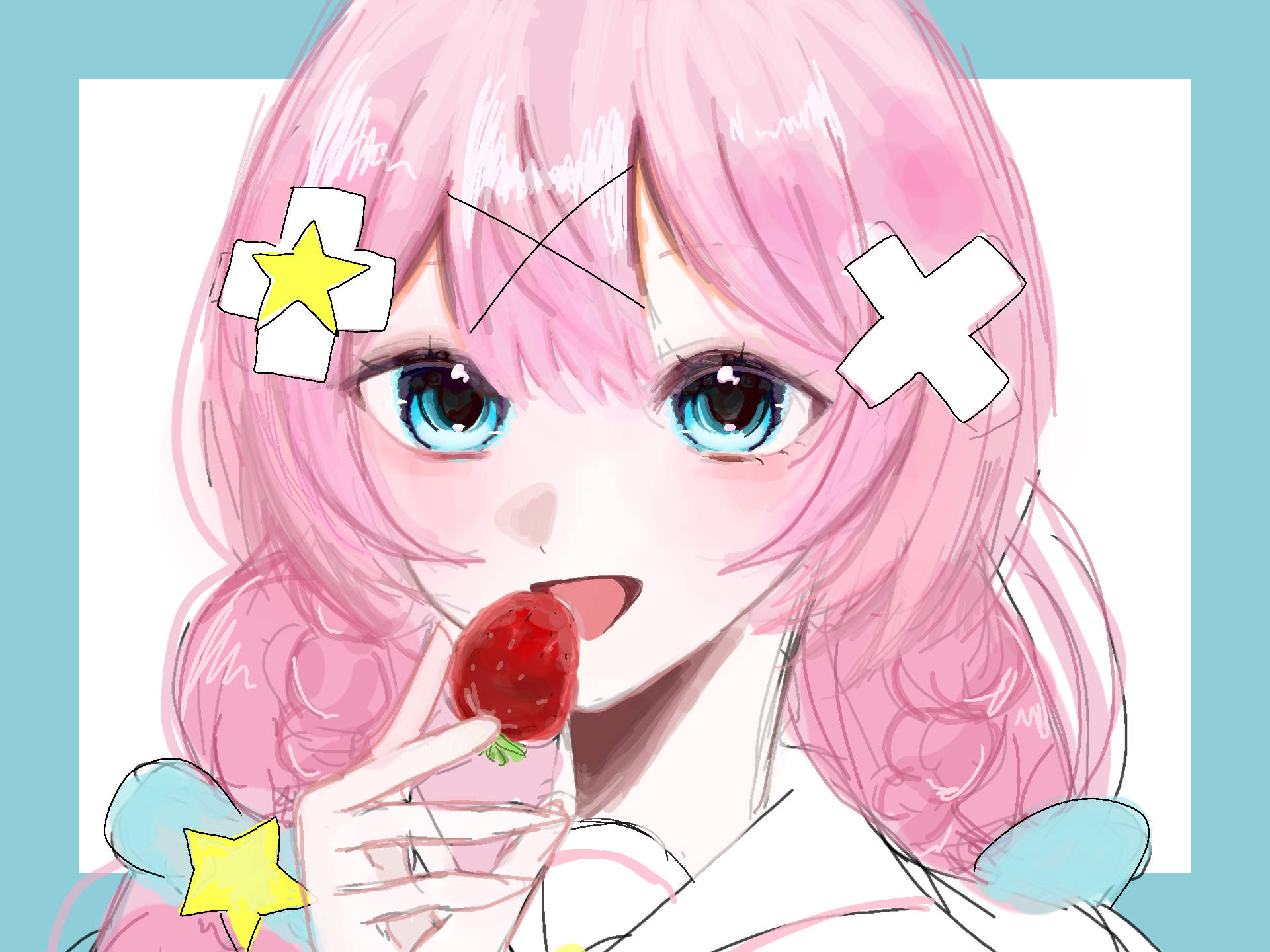 え!!!!かわいいです!!!!!!!こいつ頭おかしいので性格コロコロかわるのでだいしょぶです!!!(??????目とかもすごいすごいし私の好きな!いちご!!うまそうに食いやがって......えもう本当にありがとうございますこんな神なイラスト貰ったのに超絶短文ですみません......保存よろしいでしょうか!!