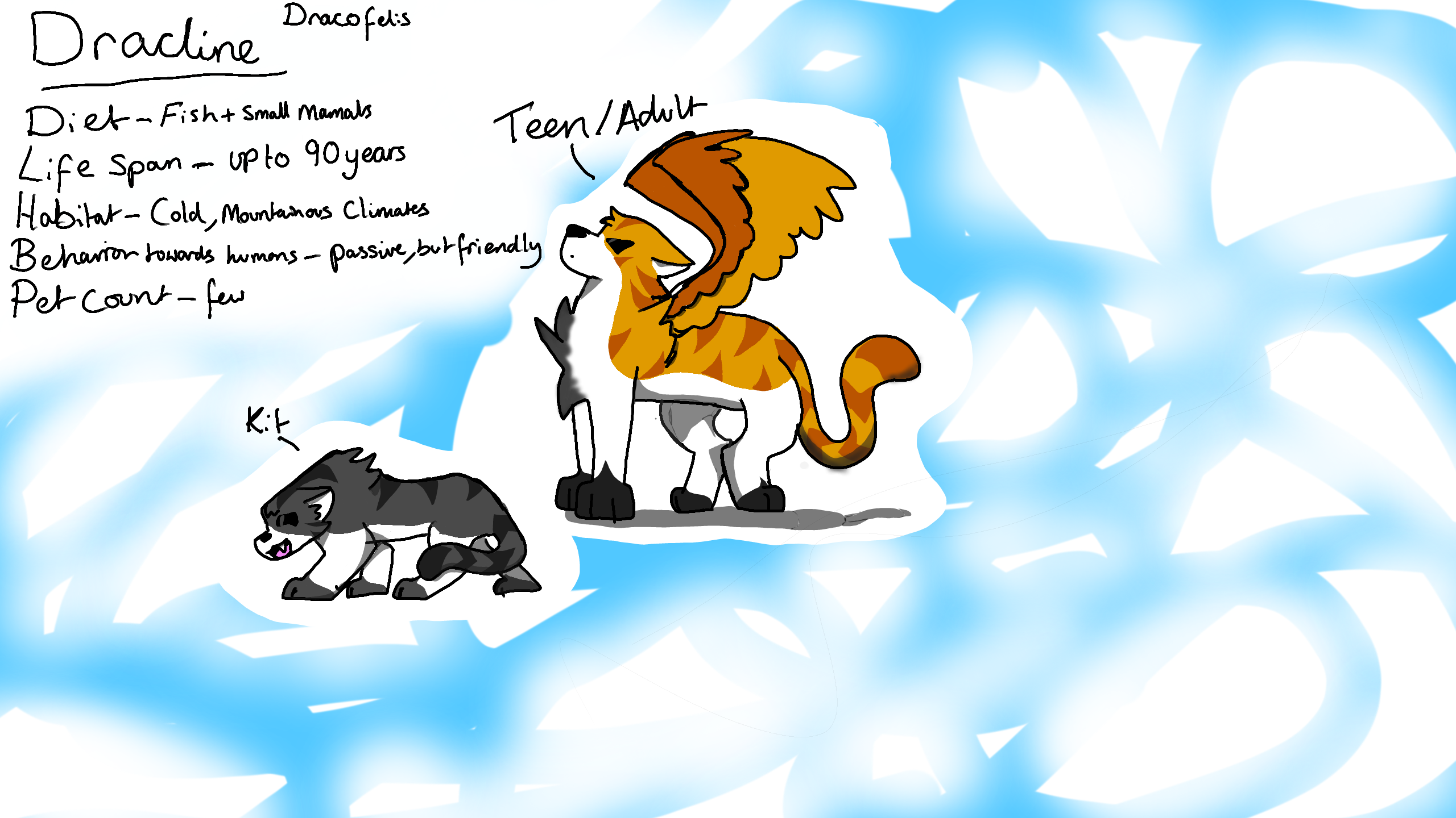 a mix between dragons and cats but based on my late cat dewi