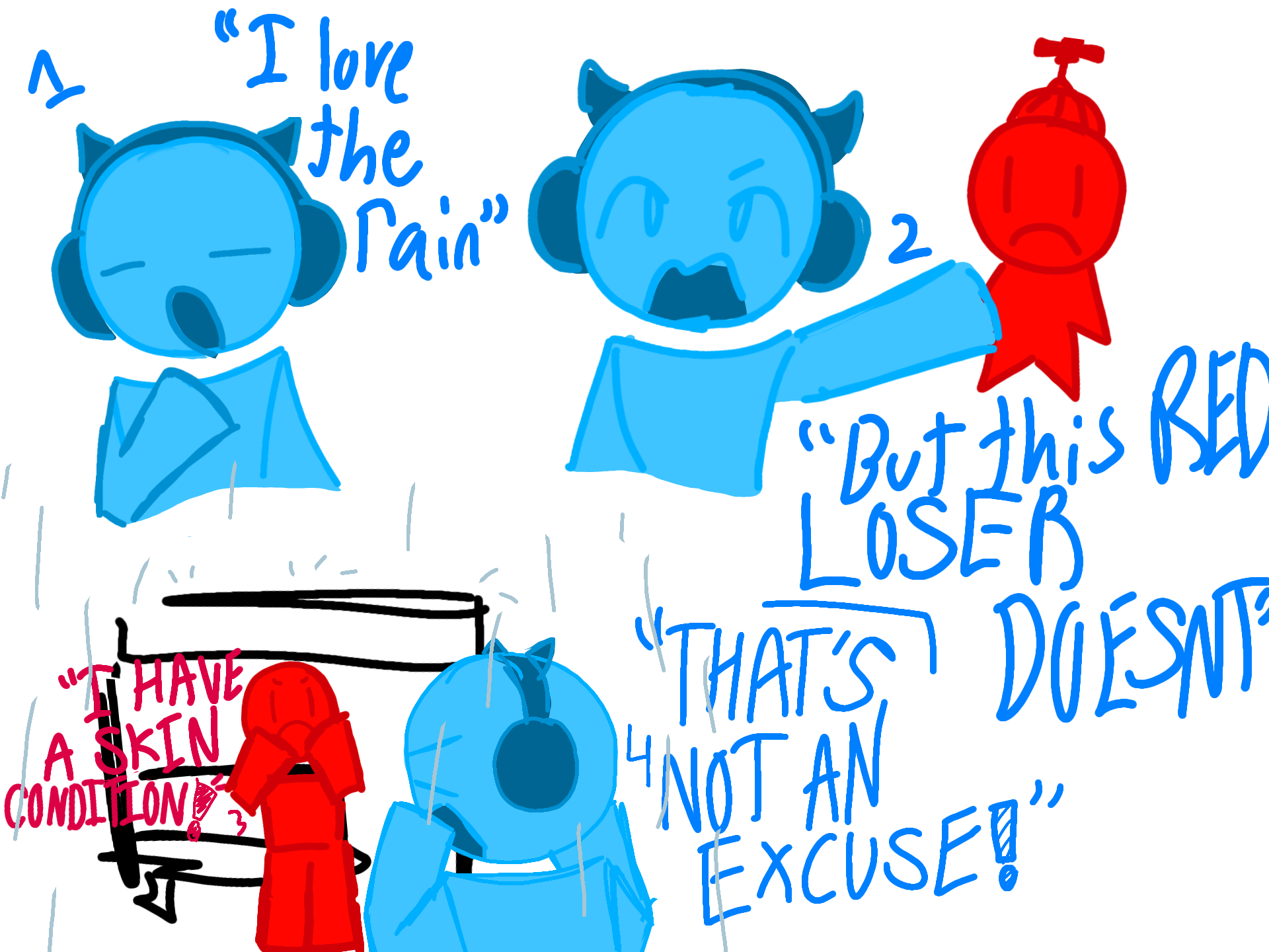 ß: I love the rain but this RED LOSER DOESNT >:(⊂: I HAVE A SKIN CONDITION! >:0ß: THATS NOT AN EXCUSE- #forsaken #bluudud #c00lkidd #forsmackinst4rz #bluukidd