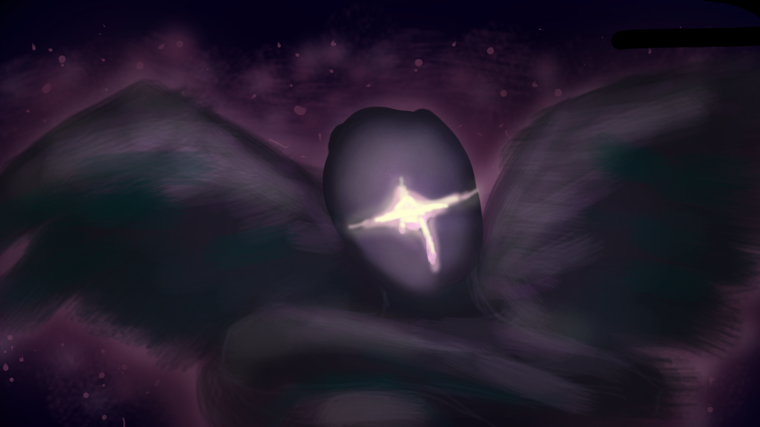 I like drawing dark characters with a single glowing eye, I Don't know, its cool #Black#Dark#Eye#light#Shadow#titanIf i think it, looks like The enemy of Deltarune-, a little