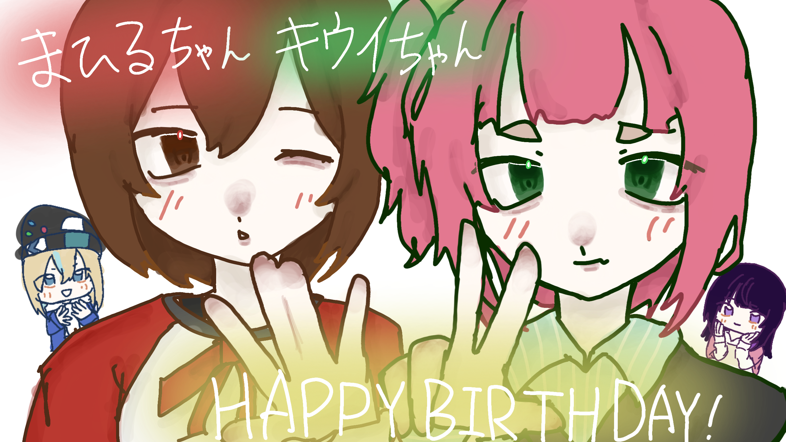 まひるちゃんは3.30、キウイちゃんは4.1がお誕生日です!!4人ともにてない;;;;;キウイたん大好きです結婚しよ #夜のクラゲは泳げない