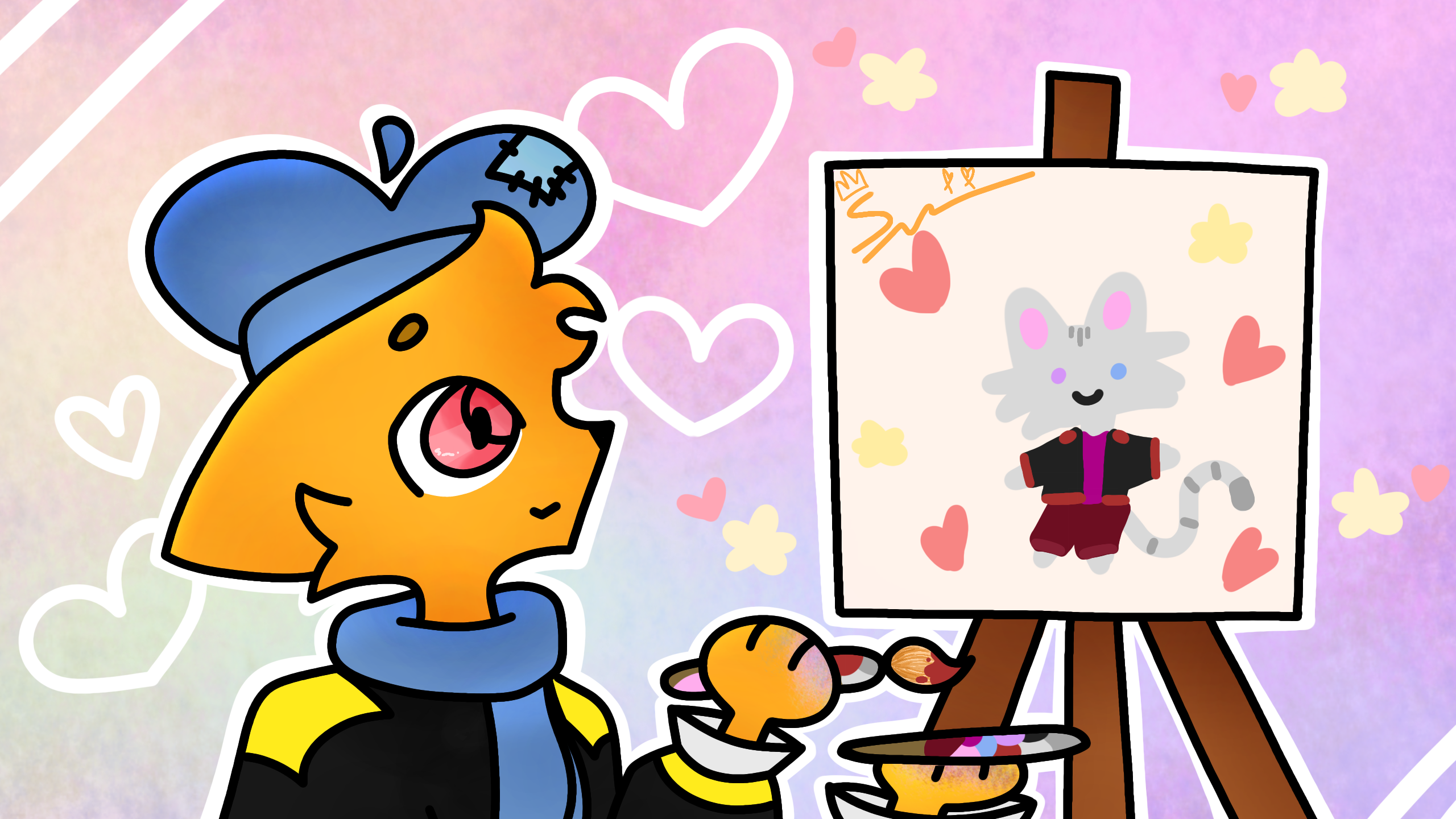 #Scroopy#Cute#Sona#Draw#Drawing#Furry#Fursona#Orange#Blue#Cat#Meow#Painting#Paint#Brush#Scroo-Scroo