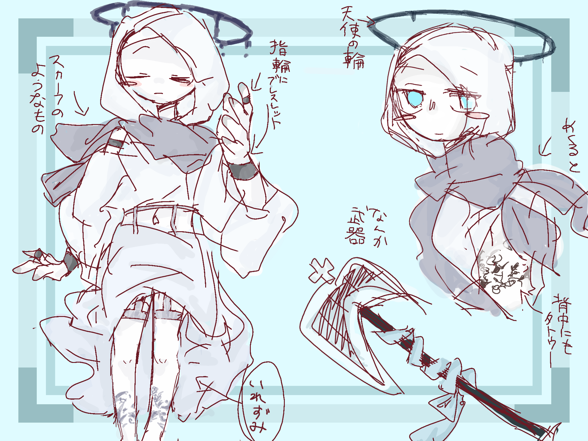 あのキャラデザすごすぎて感動しましたありがとうございます!!!スカーフとかフードとかドタイプだしダボっとしてる感じなのに刺青とかすきです!!!