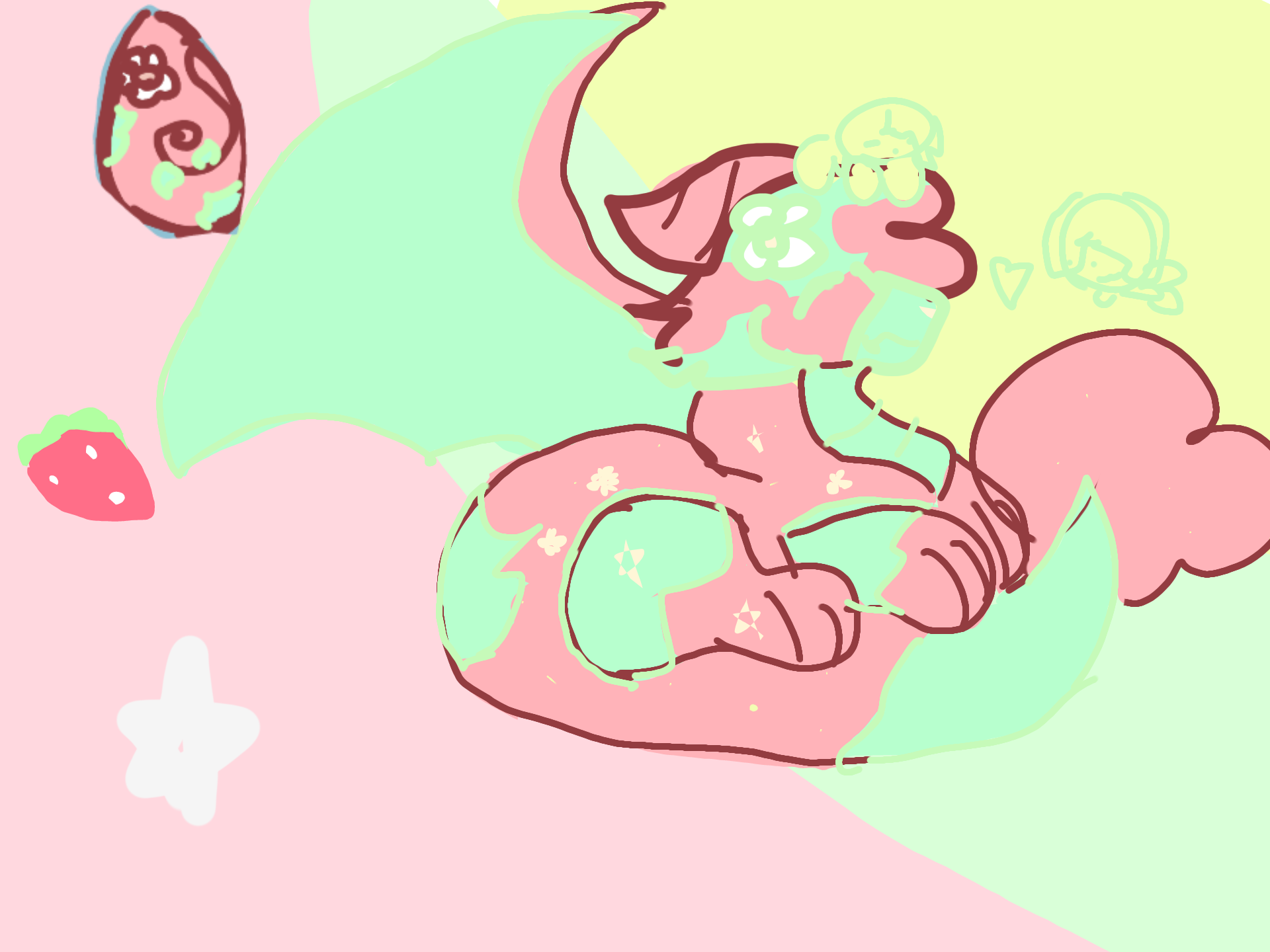 Here you go @Hemikat! Here is some info about her!She is a calm forest dragon who enjoys caring for the creatures of the forest.Also she really likes strawberrys!