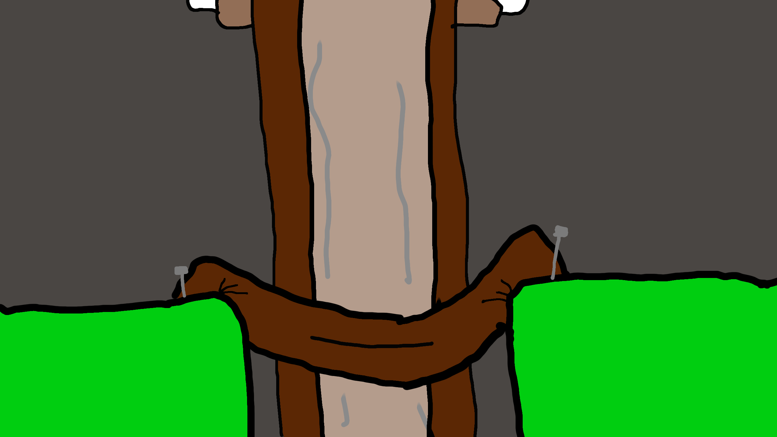 - brown fabric with a little and barely noticable hole in the middle, nailed down to the green platforms