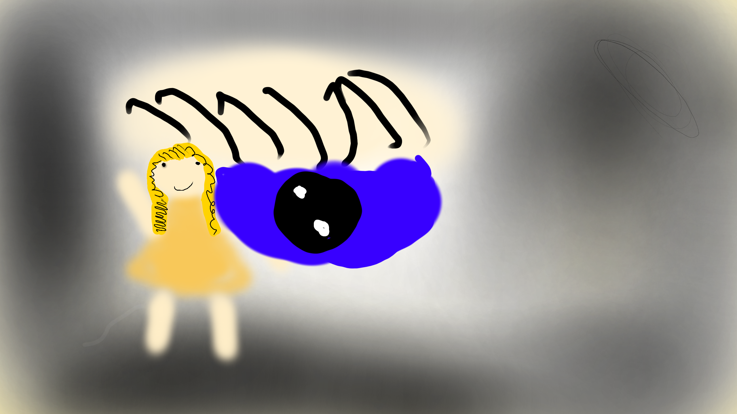 this girl is at a allution place and fond a eye