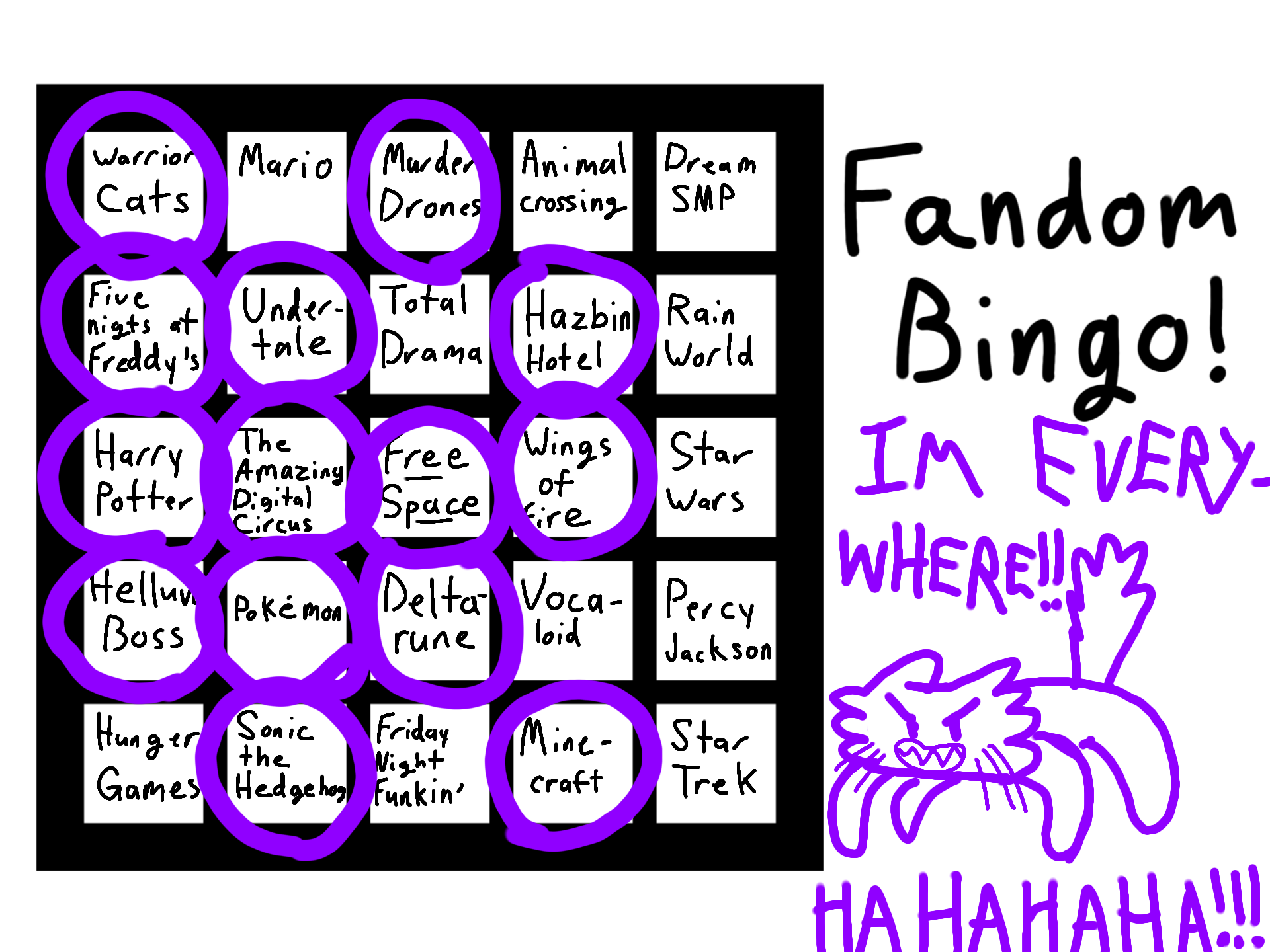 IM EVERYWHERE HAHAHAHA I literally in every damn fandom I know bro omg :skull: :laughing: #Free2use #Freetoouse #Base #Remixable #Bingo #FandomBingocredits to @OreoCat