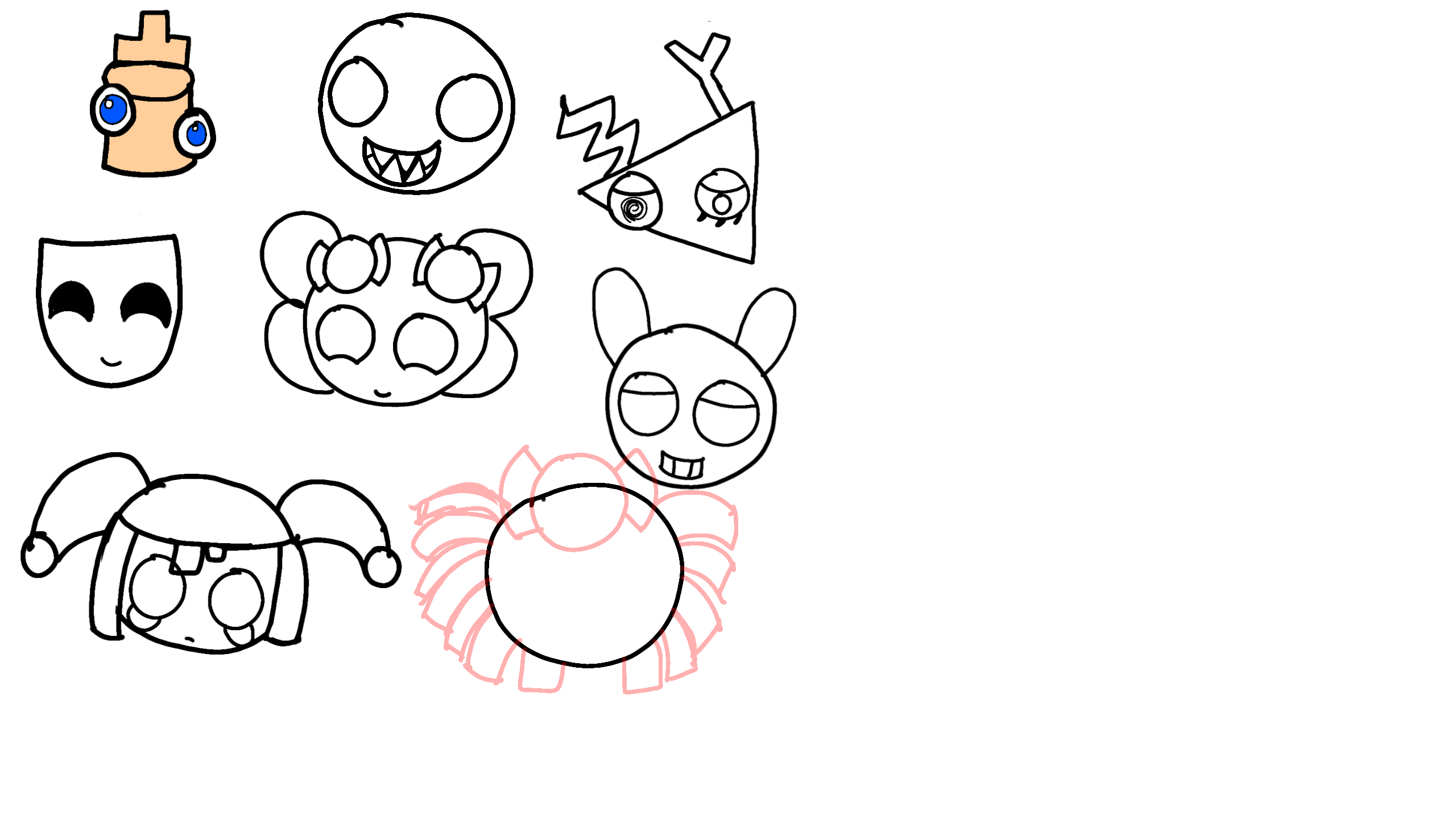 (It's a work in progress so far, and yes, I know that I have definitely butchered multiple characters with their design, but to be fair, some are hard- And I had to practice for a bit on a different layer to try to do Ragatha's hair-)