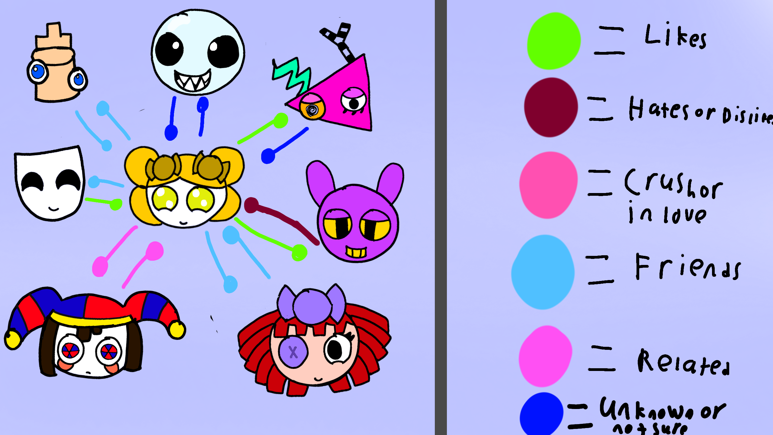 (To clarify, her and Pomni are siblings, Jax doesn't like her postivity as much, and her and Bubble are a in between, I'm not shipping her with anyone- ...yet-)