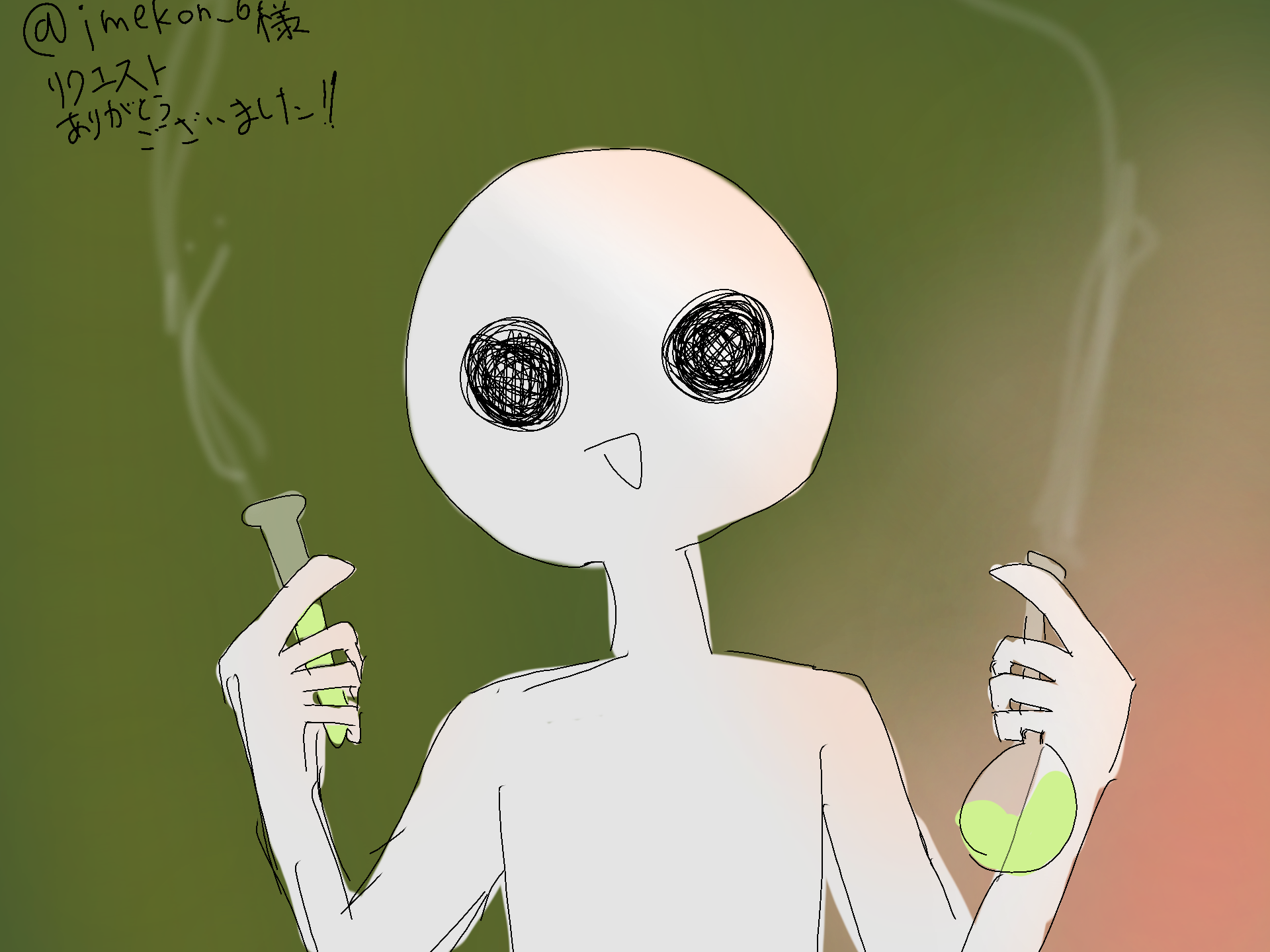 うわあああありがとうございます!両手に試験管とフラスコどちらも持たせるというアイディァ