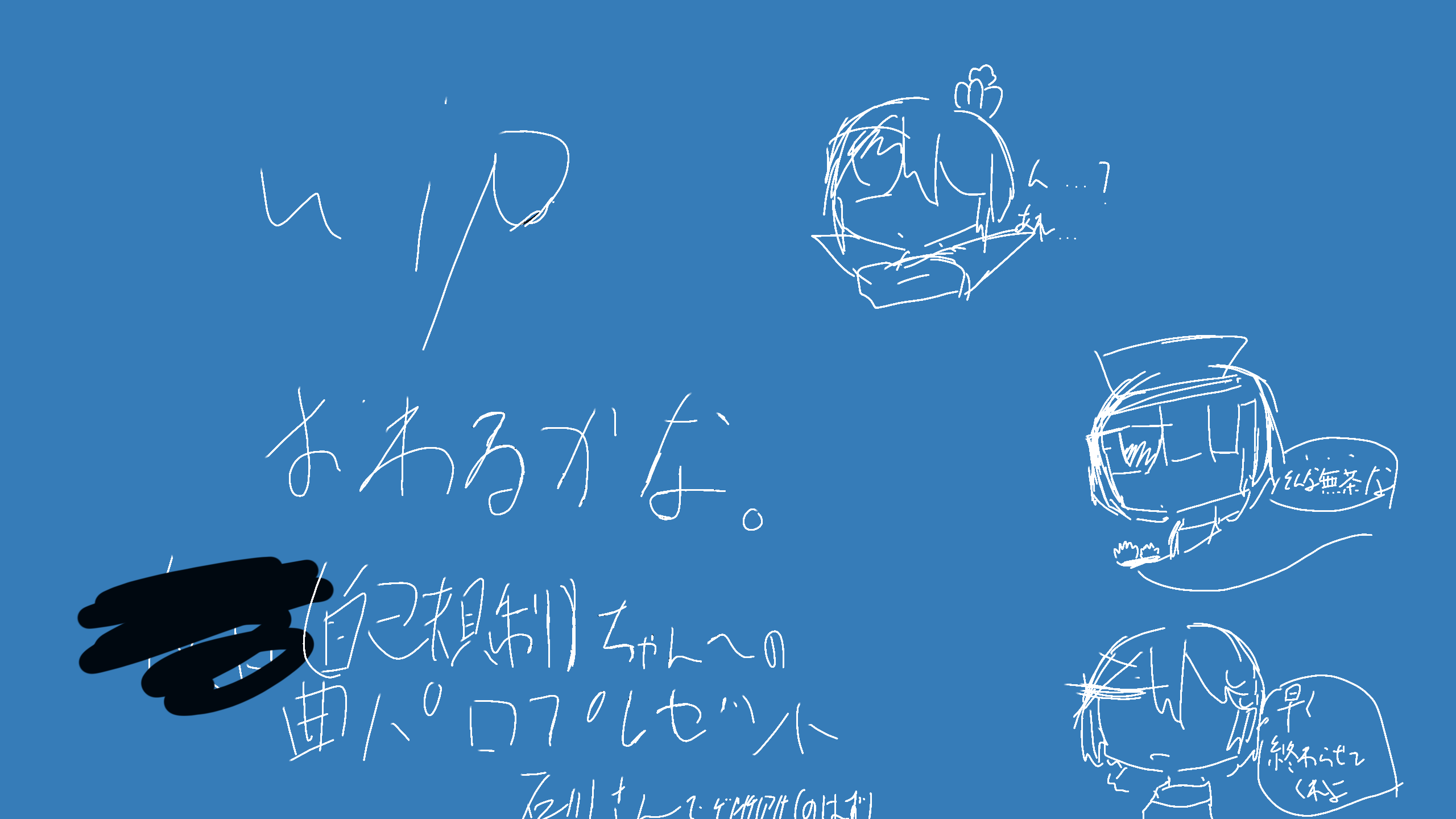 終わるよね…終わるよね…?○○さん(自己規制)への曲パロプレゼンツ #四十七大戦 #しじゅしち #うぃぷ #え、ゲンチアナいいよね!!!!!!!!てか拝啓ドッペルゲンガー消えたってマジスか。。このままじゃ、+-0も消えちゃうじゃないの。…