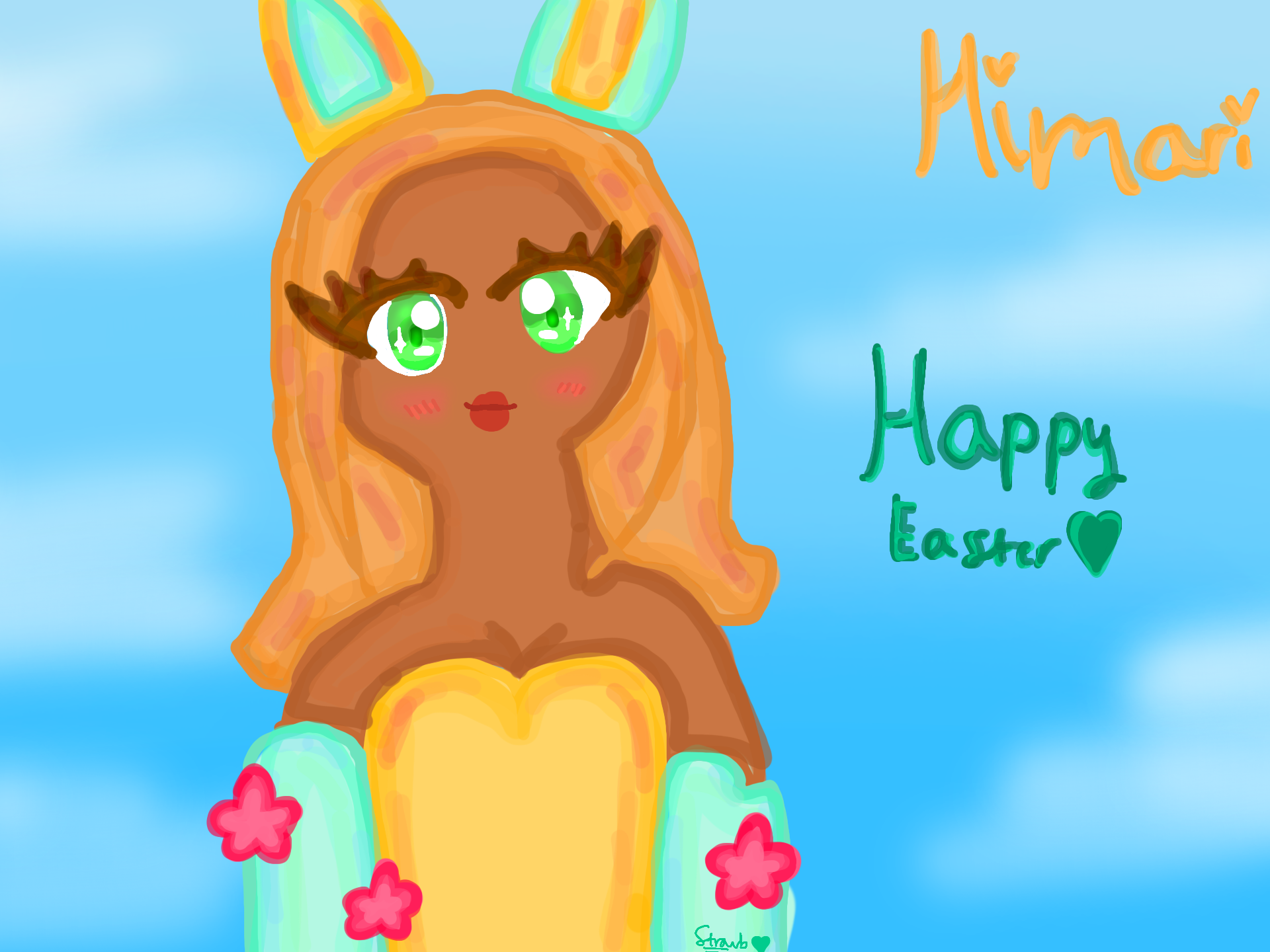 Sorry if this is late but I hope u had a wonderful Easter and get lots of chocolate <3 :rabbit: :heart_decoration: :star: #StrawbDraws #Easter #HappyEaster