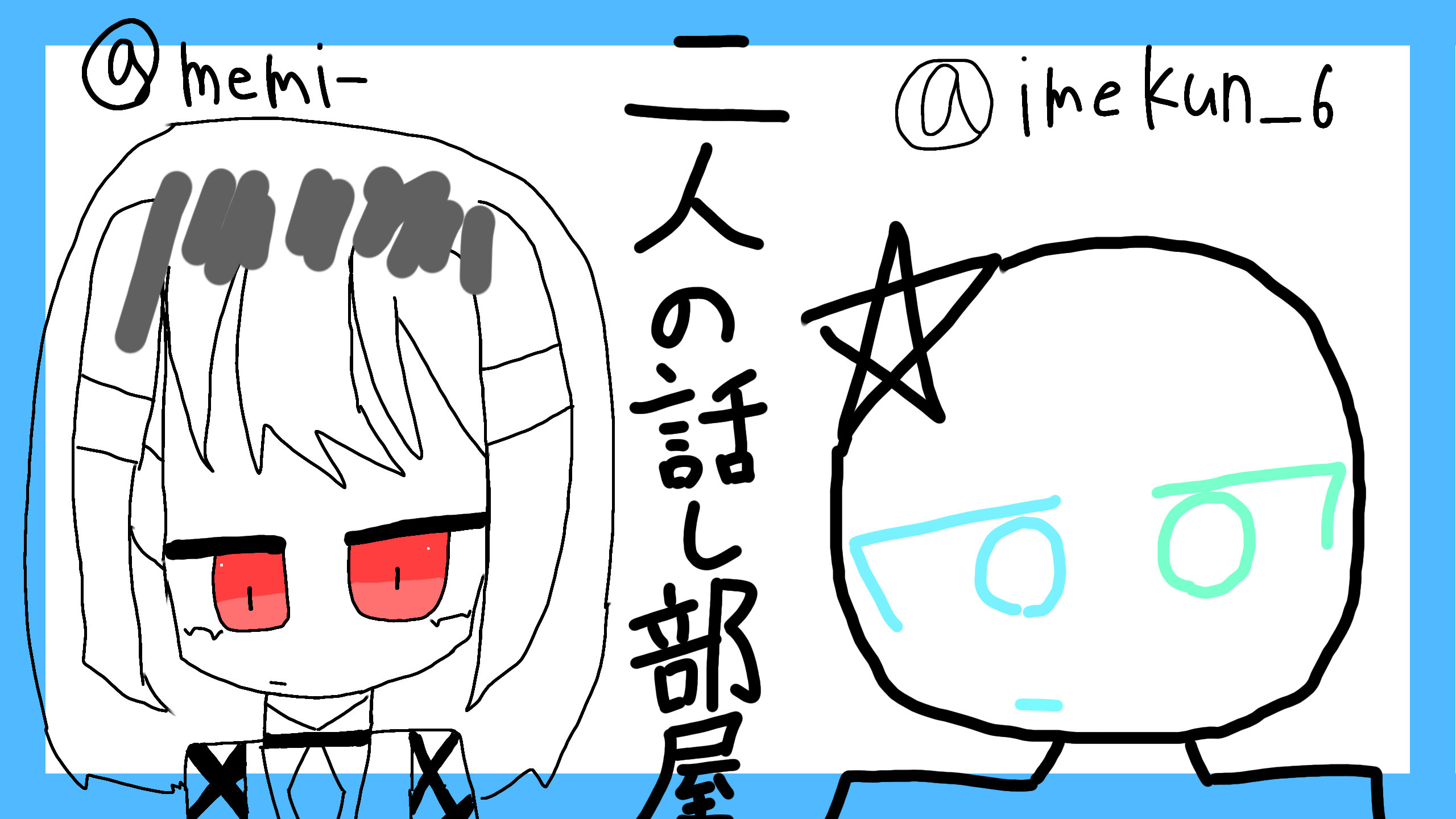メンション失礼 @memi-話部屋!!いらなかったら消す!!なんかいっぱい話そうじぇ