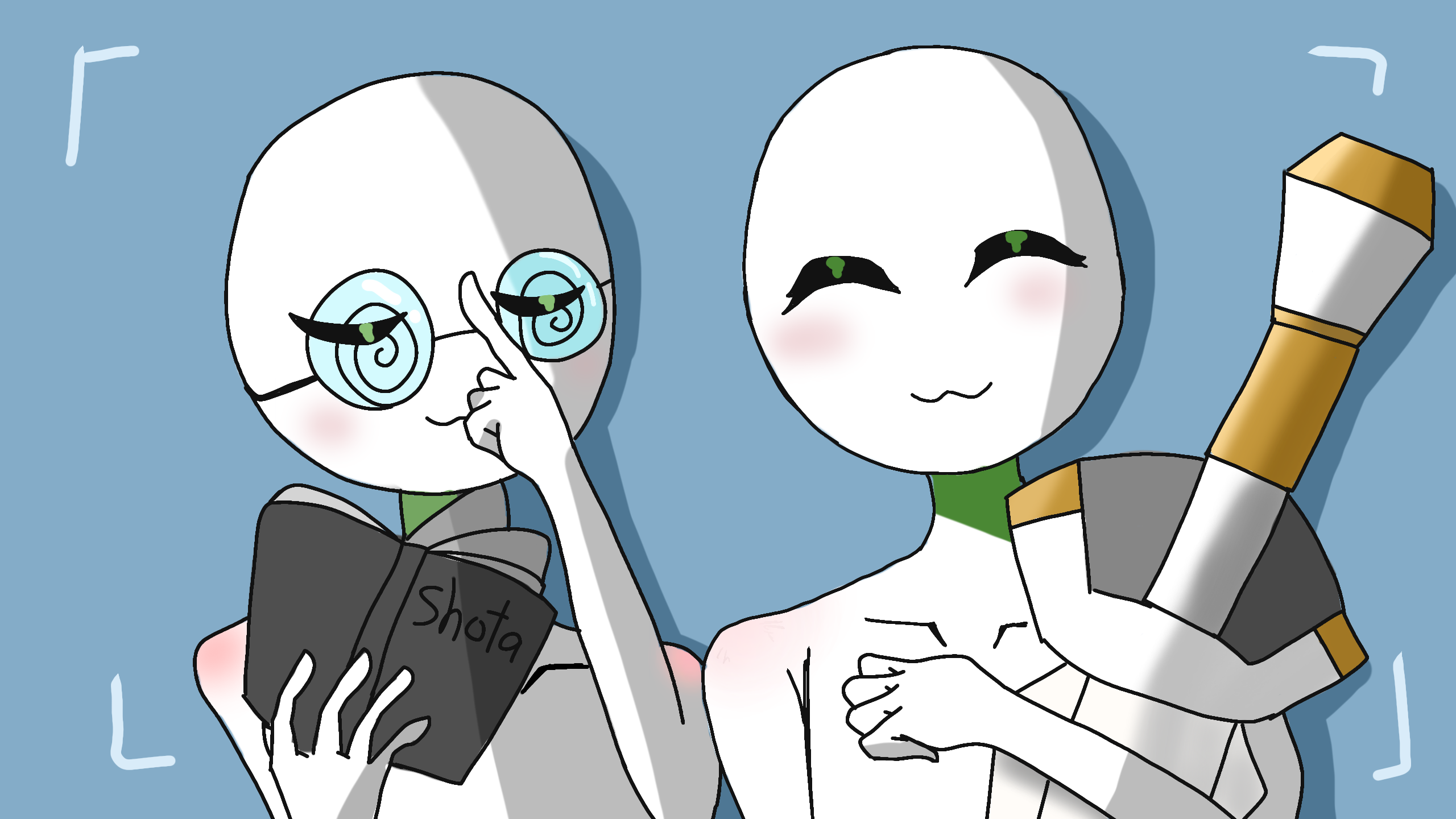 良過ぎる!!影の付け方上手いし手も上手いし!!ウイエ様武器抱いてるの可愛すぎるしフクロウちゃんはメガネクイッってしてるの可愛い!!!良すぎる!!あとフクロウちゃんの本shotaって描いてある...w