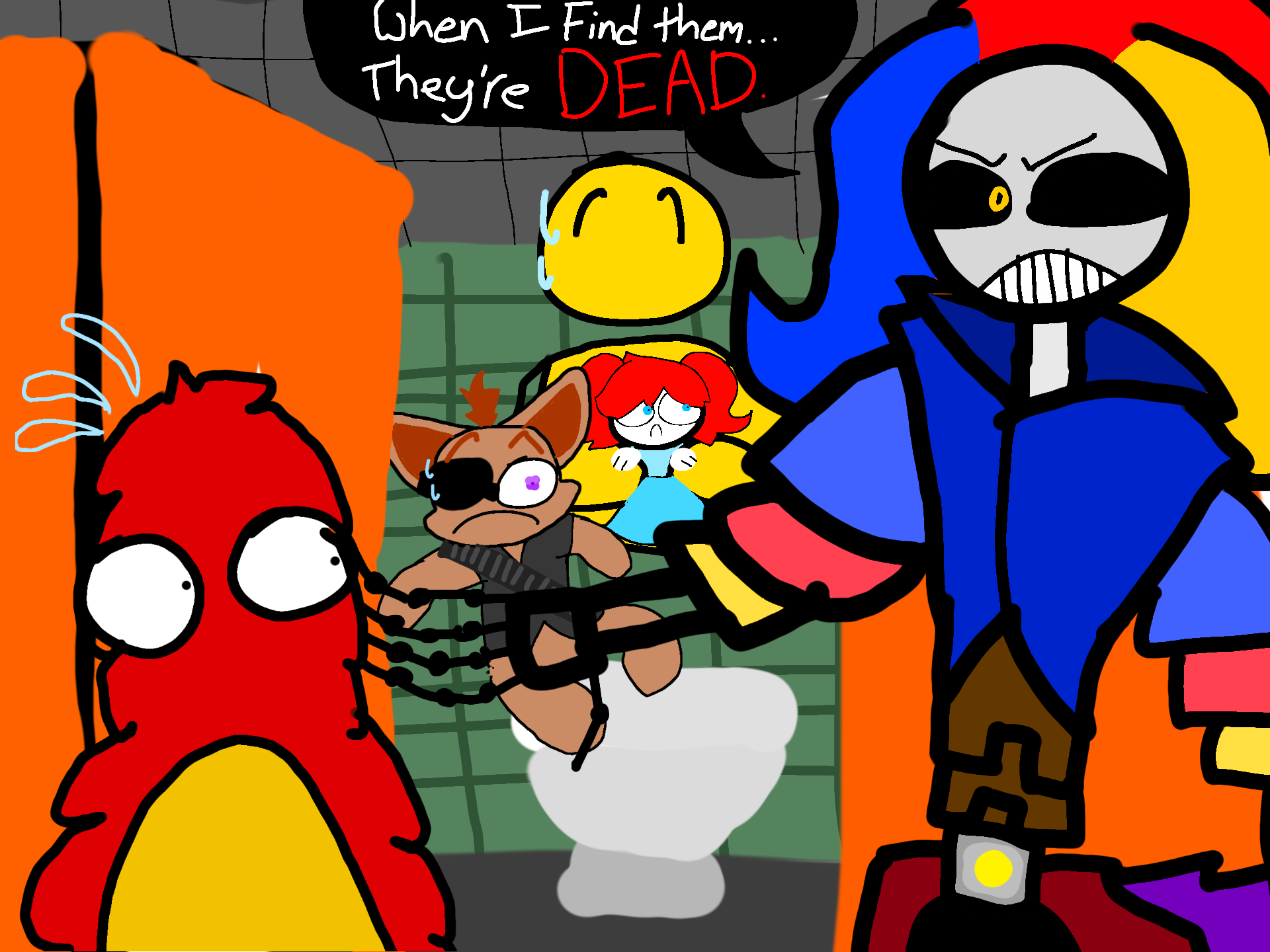 @Fnaf_Fanatic80 I feel like this has been done before, but I wanna draw that "GIVE ME THE CHILD" scene but with The Prototype, The Player, and Poppy.also I really want someone to make Crab Rave but with a bunch of mini Prototypes ngl :p