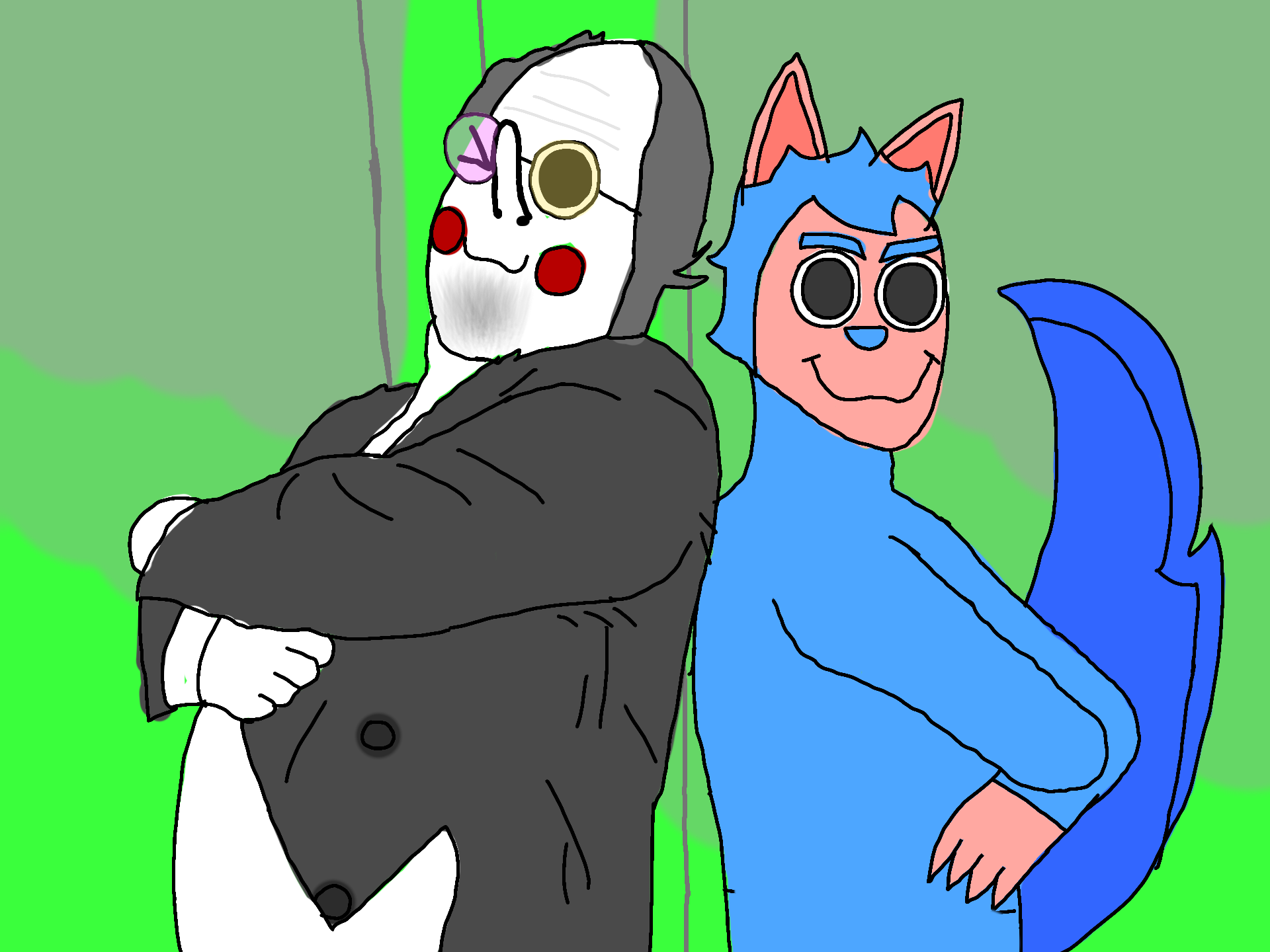 Spamton A. Spamton is the guy on the left and the person on the right is TreeMoo, my oc. Should I draw Cat&Cat next?