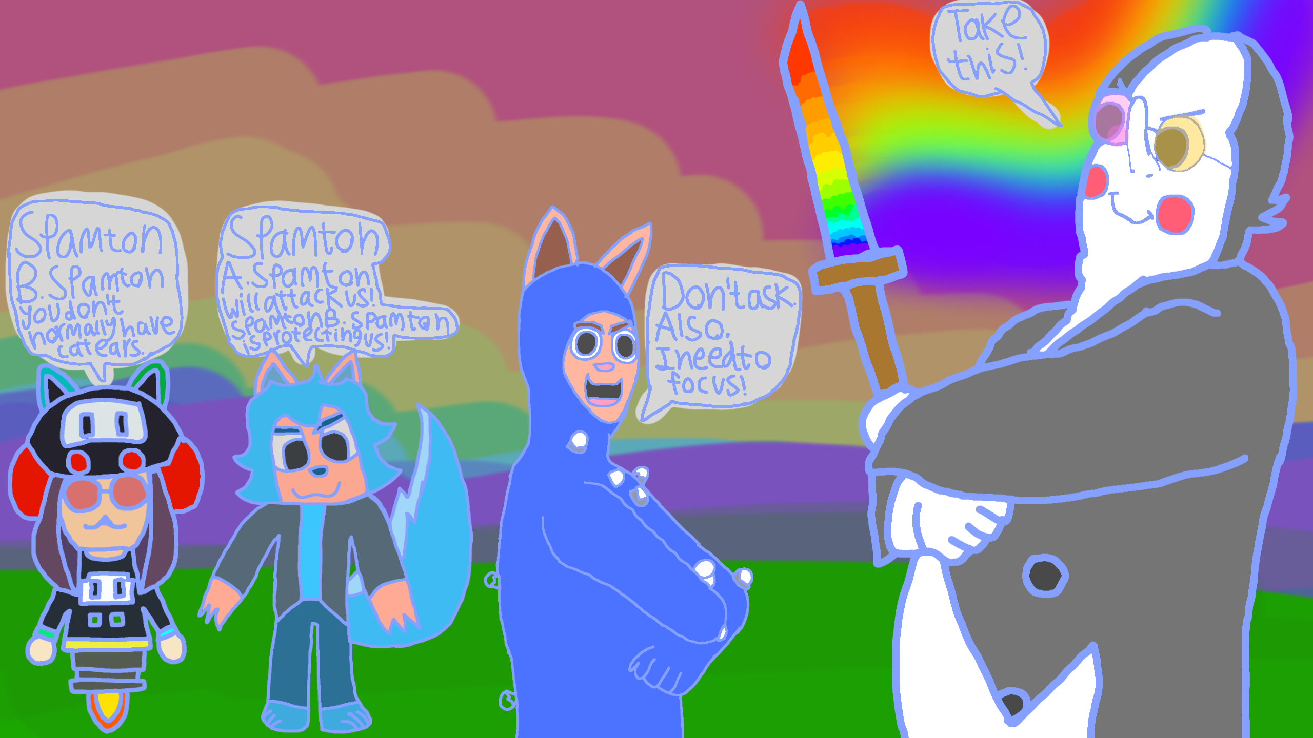 Cat&Cat, TreeMoo, and Spamton B. Spamton VS Spamton A. Spamton wielding a powerful rainbow katana! Should I watch the full Spamton Sweepstakes video?