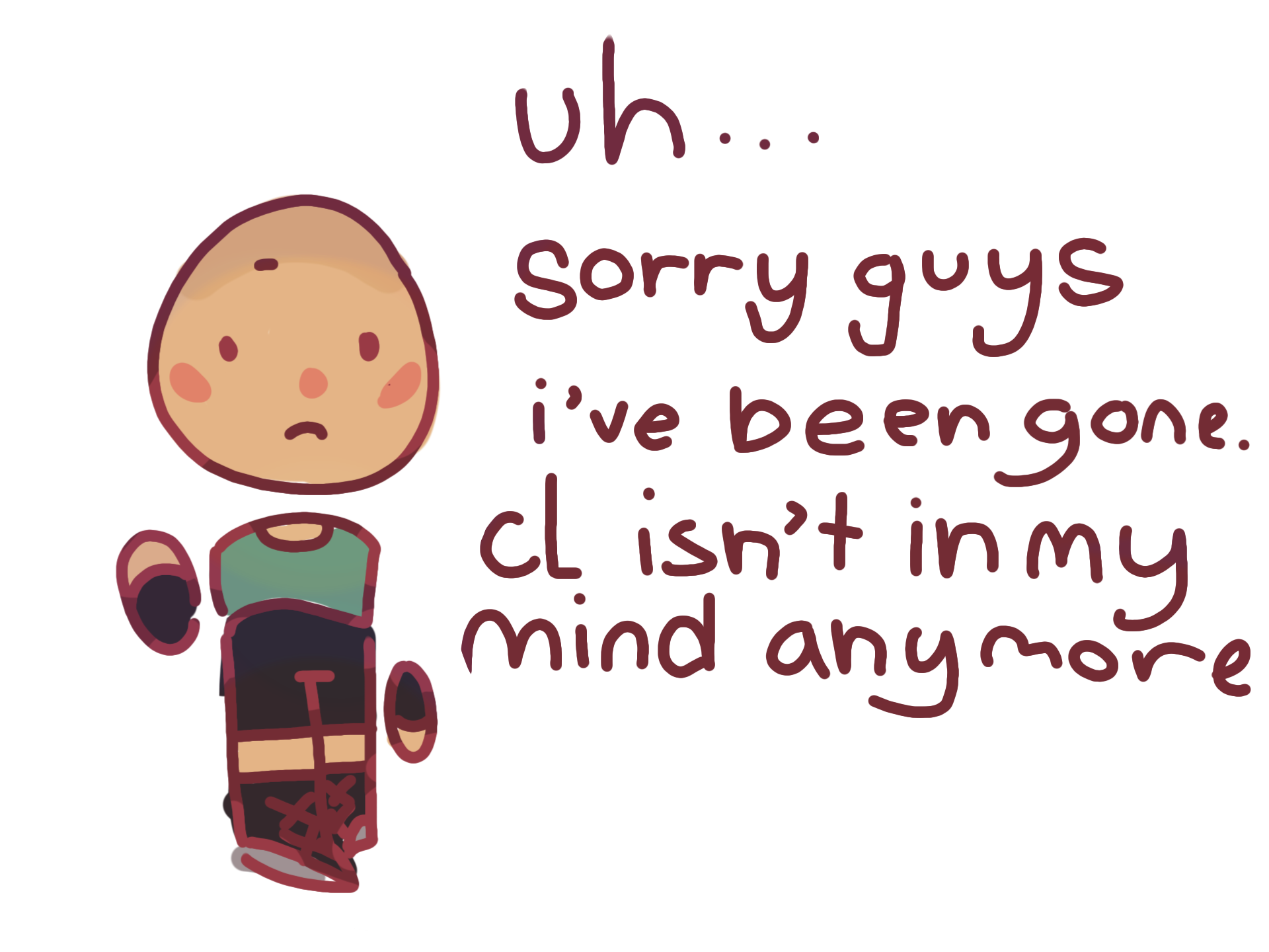 im sorry i havent been on latey im kinda busy ik i say that everytime but i might not be on often anymore :( another reason is bcus everyone cool has left and my friend group got torn apart irl and im trying to focus on God and my fam and friends more