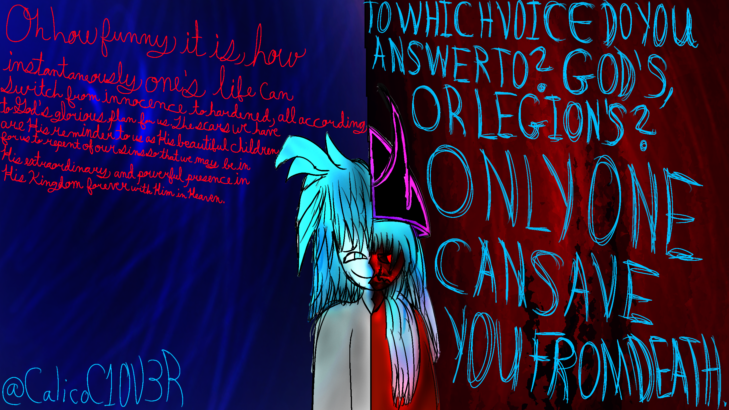 Oh how funny it is, how instantaneously one's life can switch from innocence to hardened, all according to God's glorious plan for us. The scars we have are His reminder to us as His beautiful children for us to repent of our sins so that we may be in His extraordinary and powerful presence in His Kingdom, Forever with Him in Heaven.