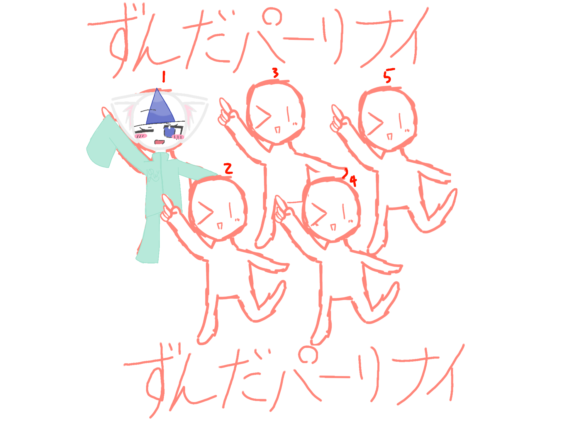 頭の上に数字があるから、自分の番号と同じとこに描いてね!