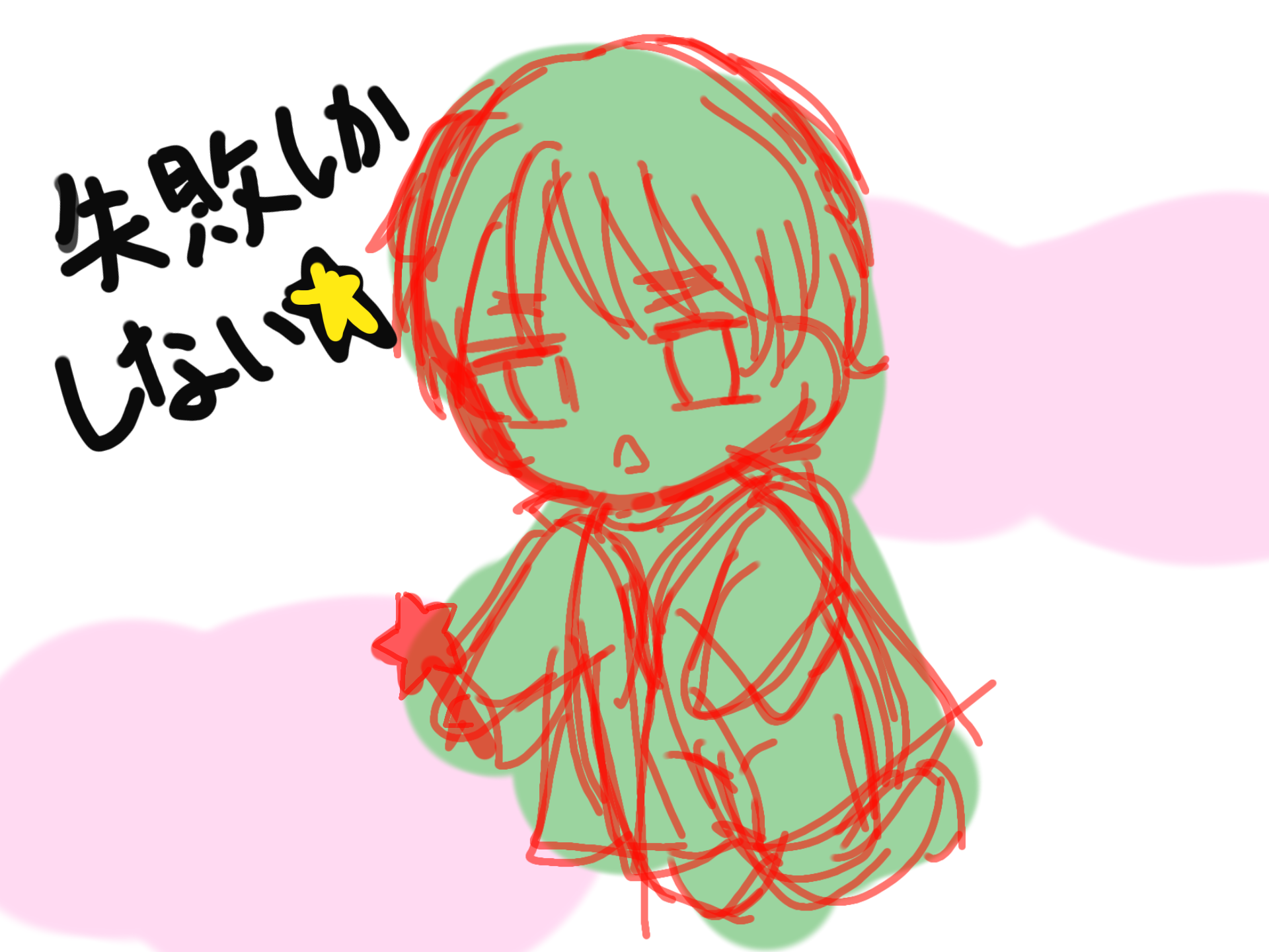 ここまで結構上手く描けたけどッここから先失敗する未来しか見えないッ(涙)因みに今描いてるのはふよふよイギちゃんです!もう嫌だ!ラフがいっちゃんいい状態なんだから!背景センスはないよ☆