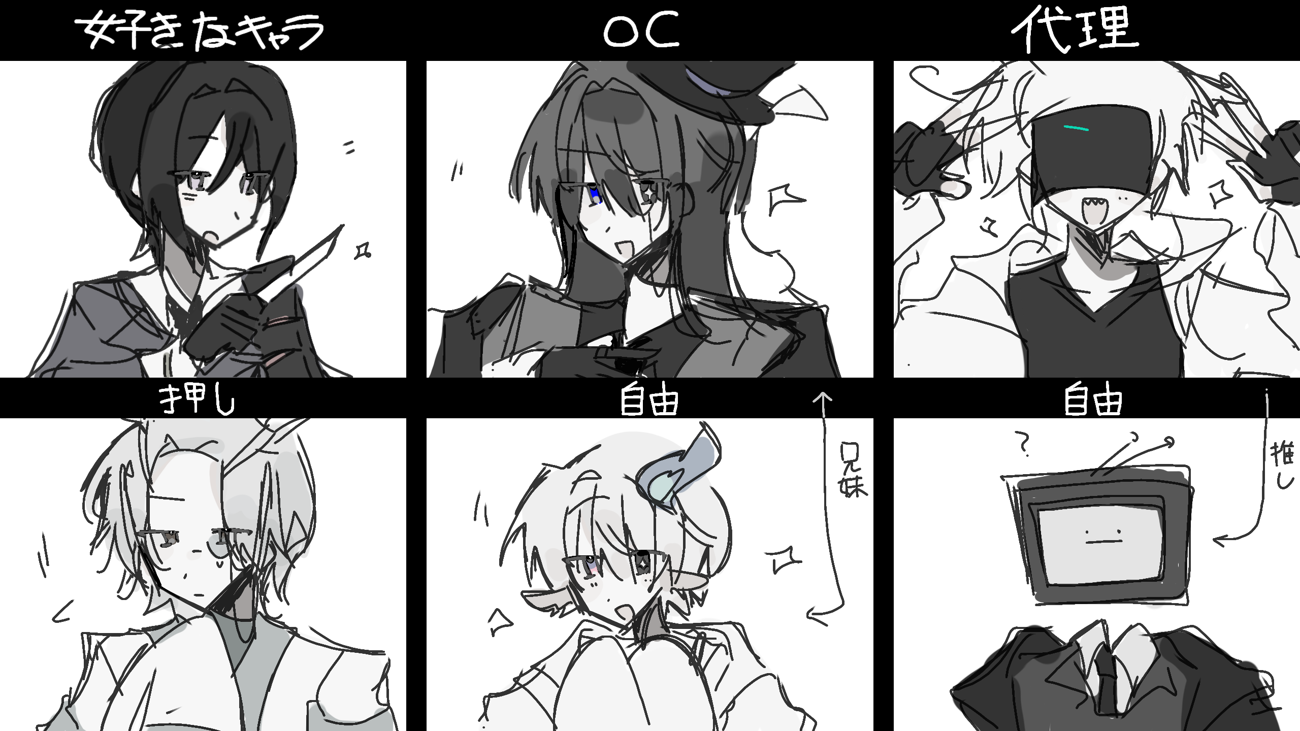 ウオワアアッッ!!!(?)どれもこれもよすぎるっ! まさか使ってくれるとは思いませんでした! ありがとうございますっ!! 押しから自由までキャラデザが好きすぎますっ...! 改めて 使って頂きありがとうございますっ!