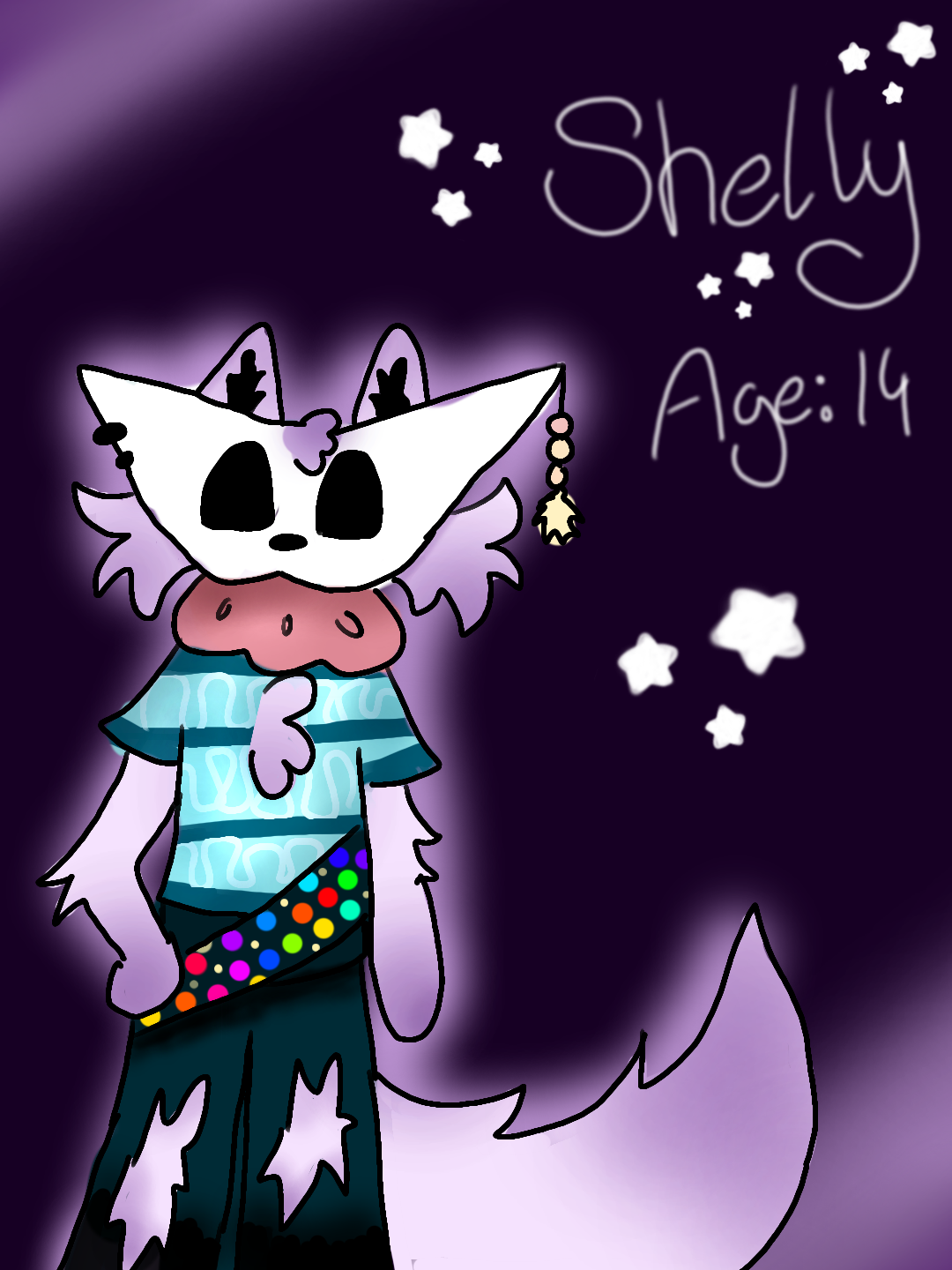 Shelly is a ♀ fox that has a mask on, she never takes it off because it was a gift from her grandma before she had past away!