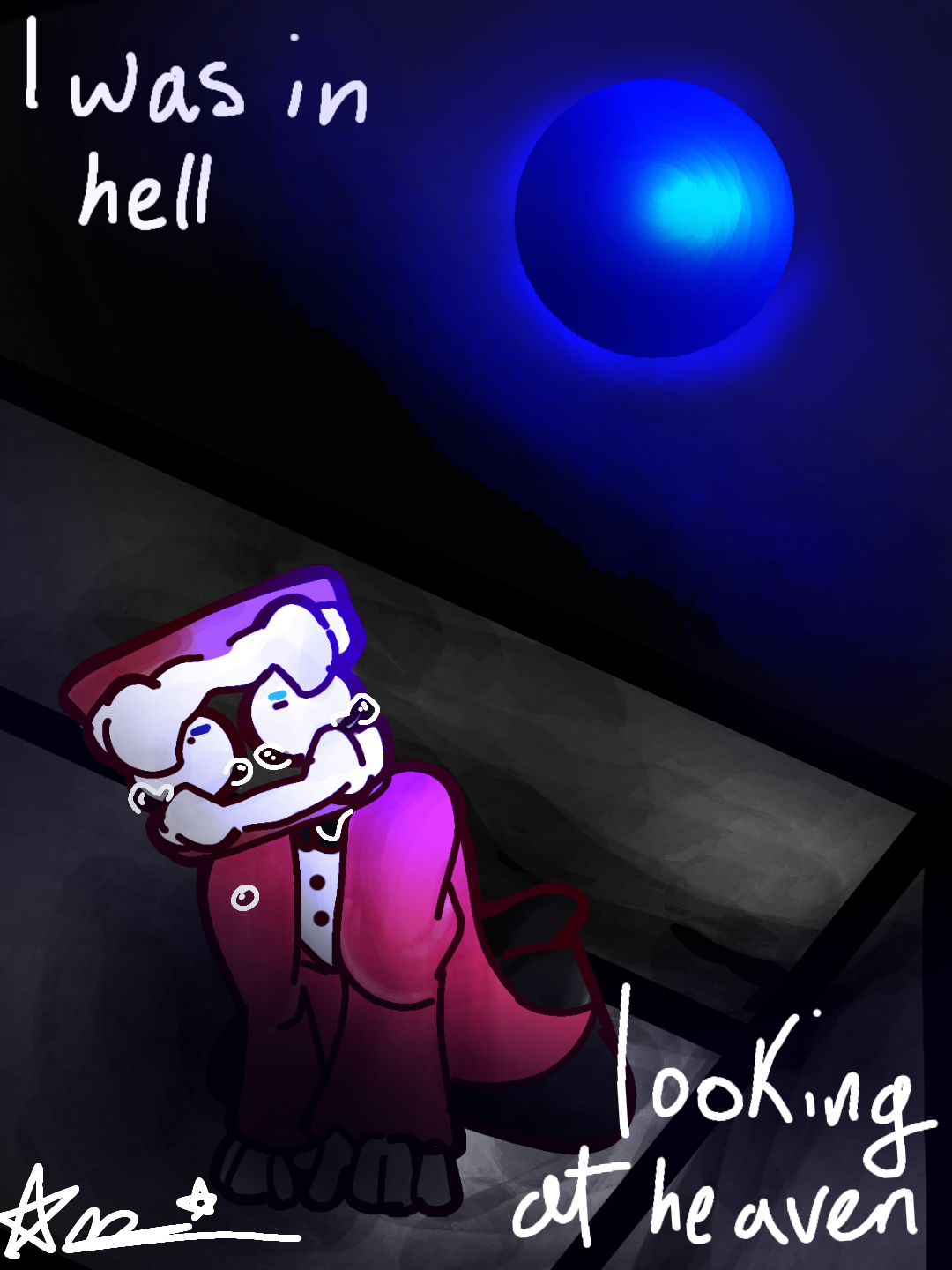 @_-redfoxy-_ He was in digital ****, looking at digital heaven He just wanted to fufil his purpose, He tried to show affection in the best way he could, Until.. He died.