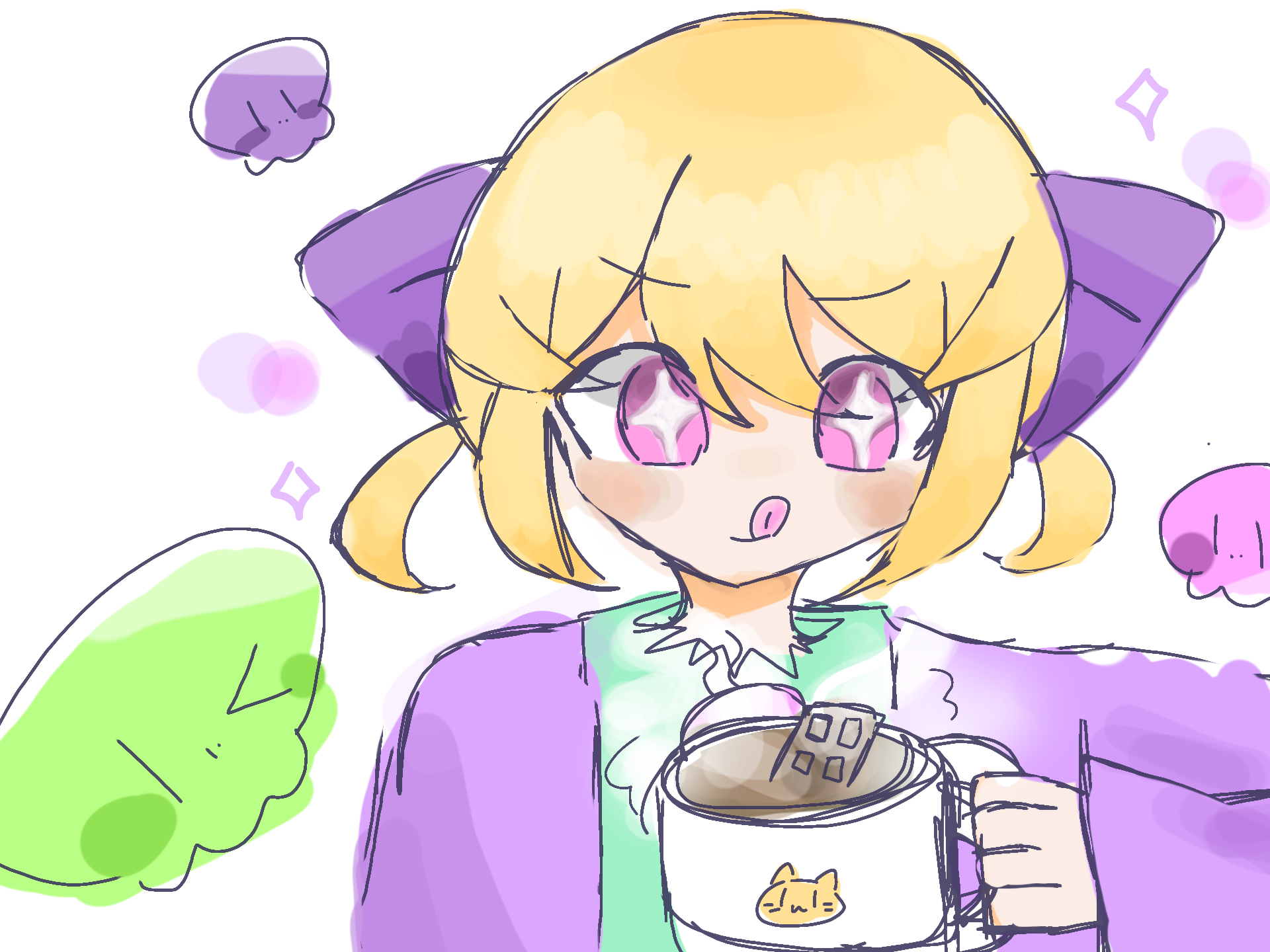 落書き!!!!この季節でホットココアはきつくないか!!!前よりは頑張ったぜ!!!あと110人突破ありがとう!!!!遅くなってすいません!!!銀星3あざます!!!! #チョコ助 #MEKA代理