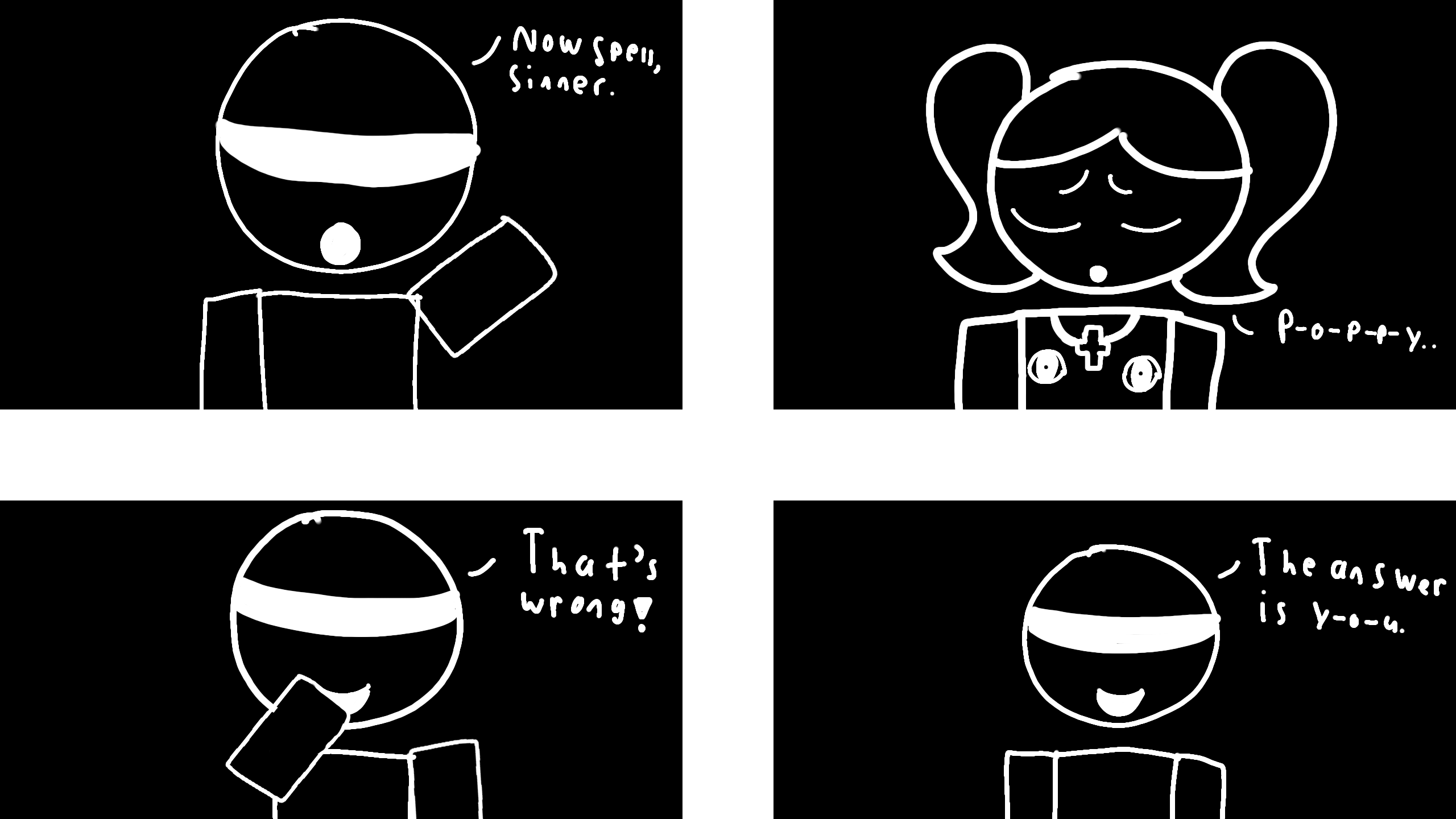 (I just realized it was "Now spell, sin" not, "Now spell, sinner"-