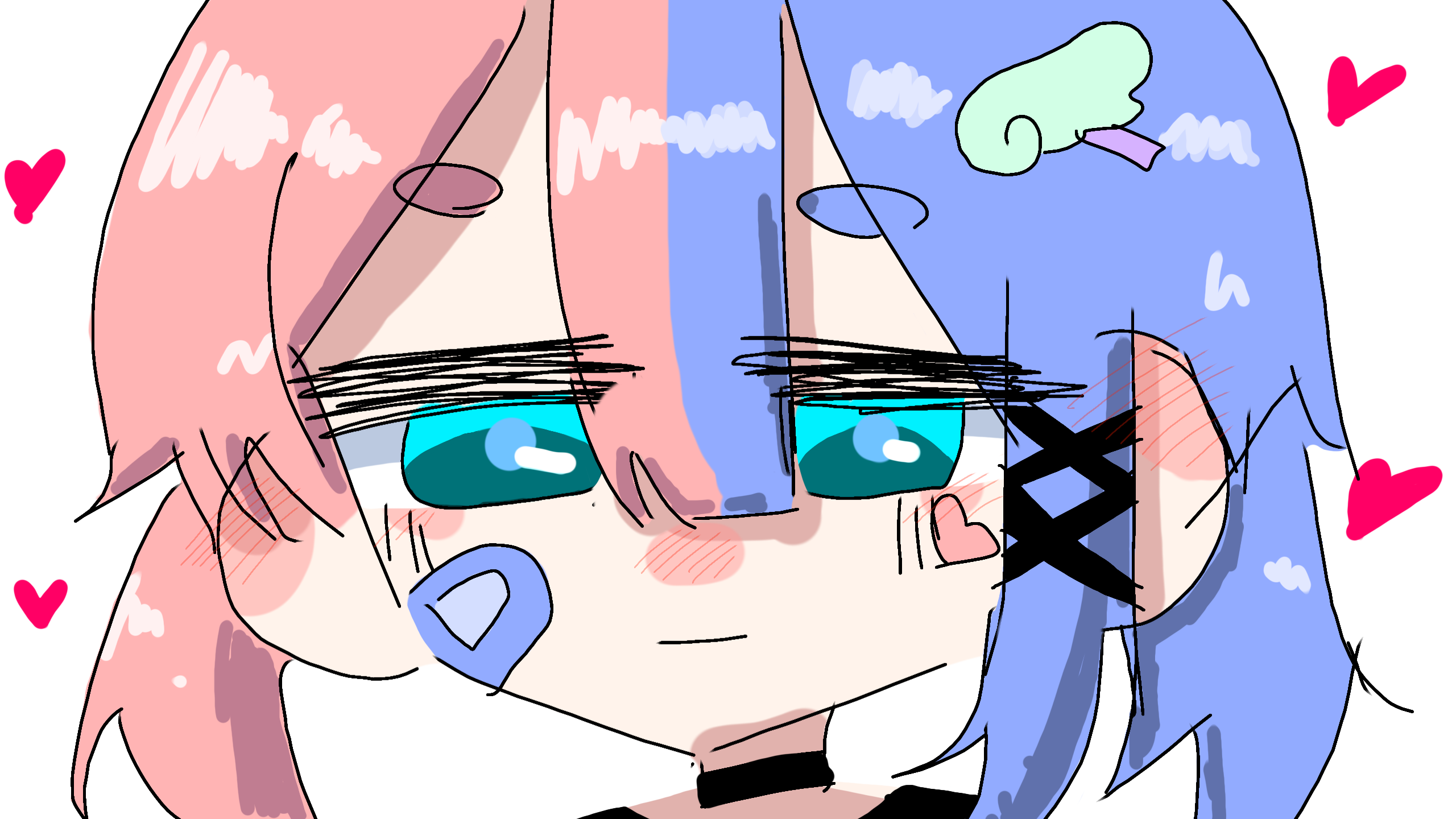 塗ってくれてありがとう!髪色二色なの可愛い好き!あと背景?にハートあるの可愛いすぎ!!塗ってくれてまことにありがとうございました
