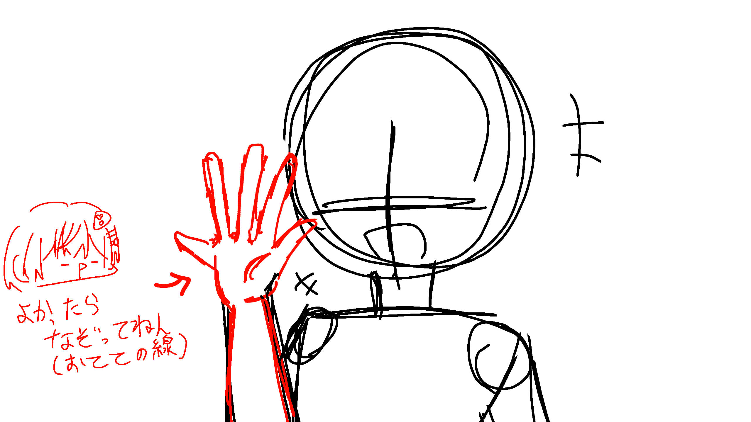 急いで描きすぎて雑になってしもた、、手のとこ!ムズかったらなしでもええで!、、無しだとただ突っ立てる人になってしまう、、 @nuc-324-daor