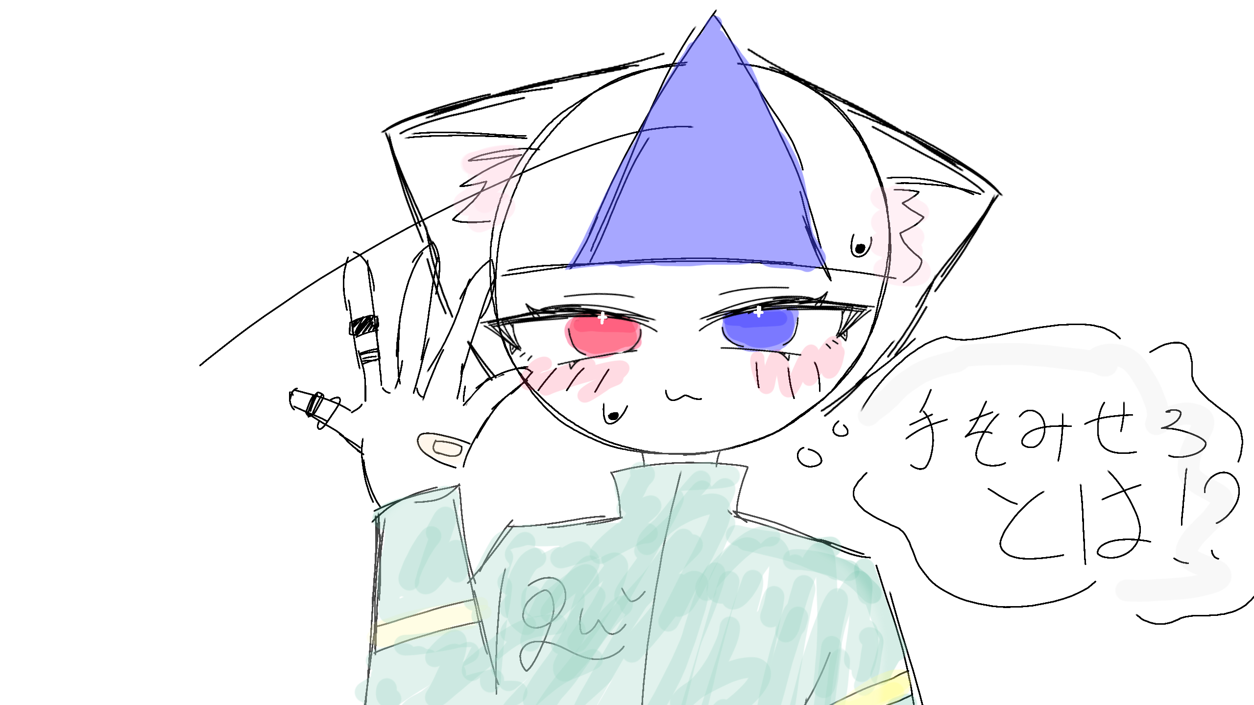 急いで描きすぎて雑になってしもた、、手のとこ!ムズかったらなしでもええで!、、無しだとただ突っ立てる人になってしまう、、@/nuc-324-daor #remix________________手はこんな感じヨツツツツ☆(?)構図アリガトネえええええええええいつおうメンソン @Gon_maruこいつにピアス付けるかなやんでりゅ