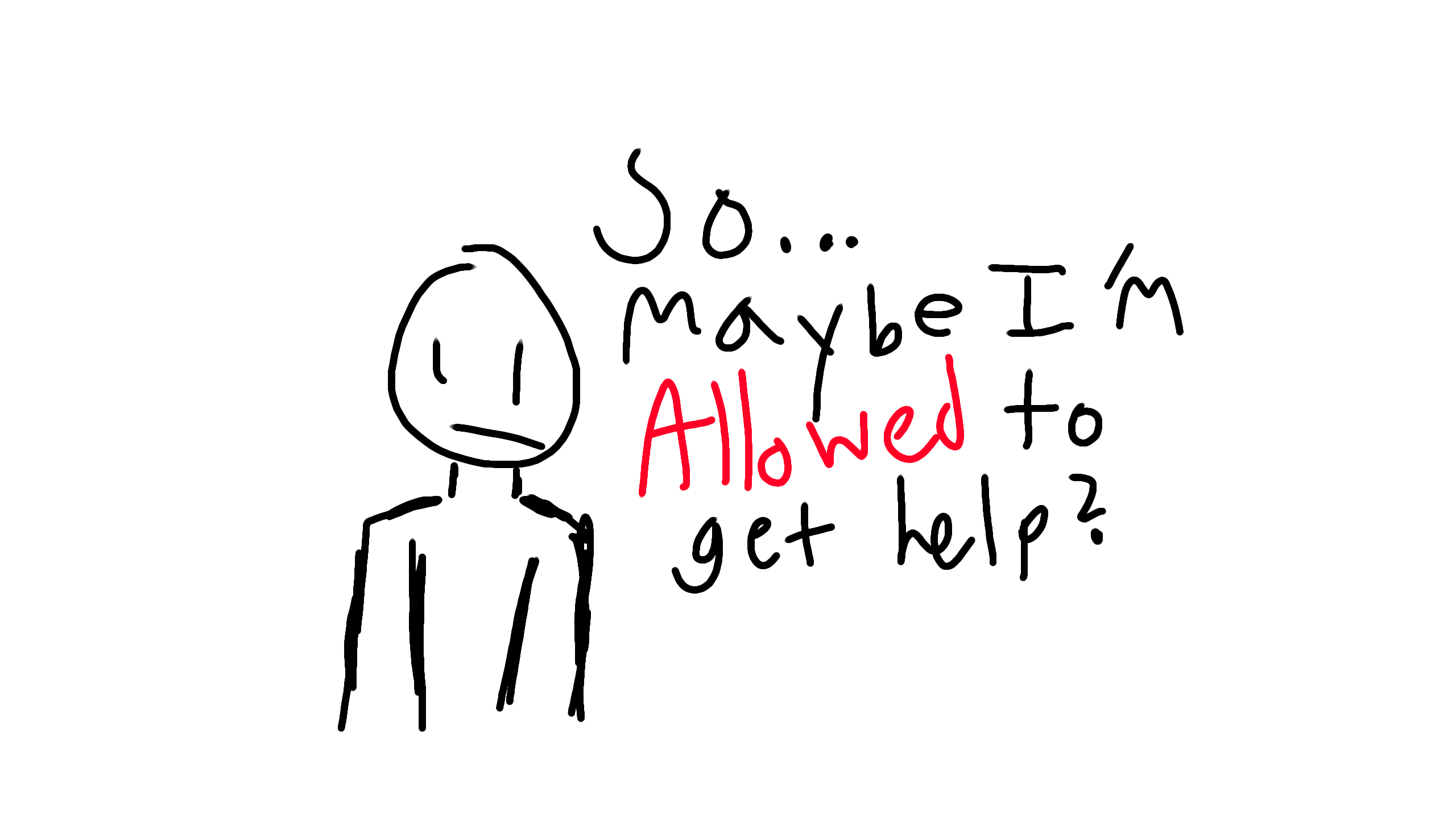 Im seeing 1 of my school counselors now, and now maybe im allowed help without it affecting others(I felt like me recieving help would be taking up space from people who actually need it). today proved I need it.