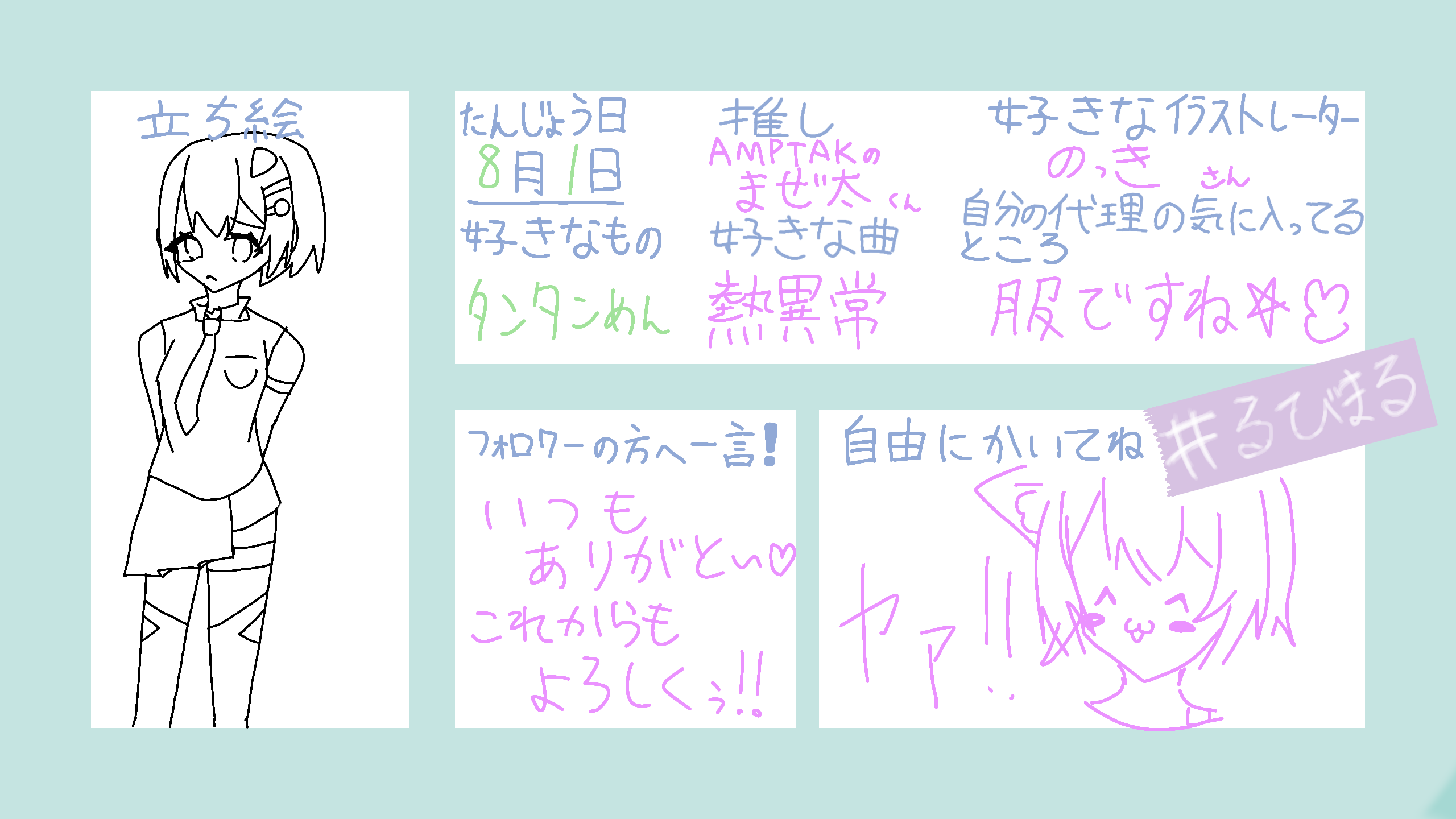 るびさと私が使うやつです!他の人が使う用の自己紹介カードは後日作りますね!!るびさへ!文字の色とか自由に変えていいよ! #るびまる 描いたよん!!なんか楽しかったぜ 念のため→ @Ruby-saamonn