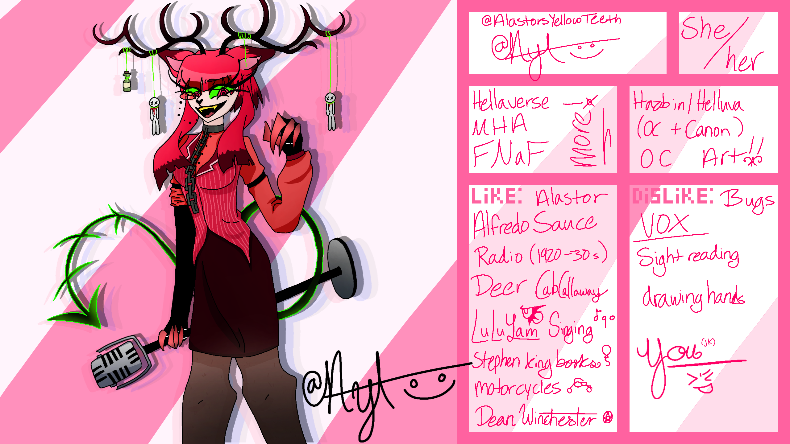 New Sona!!Ya, she's bsically alastor, but my p3rsonality, interests all align w/ him, plus wit my user i thunk it makes a littl3 sense....?? #Sona #AYT #MTA
