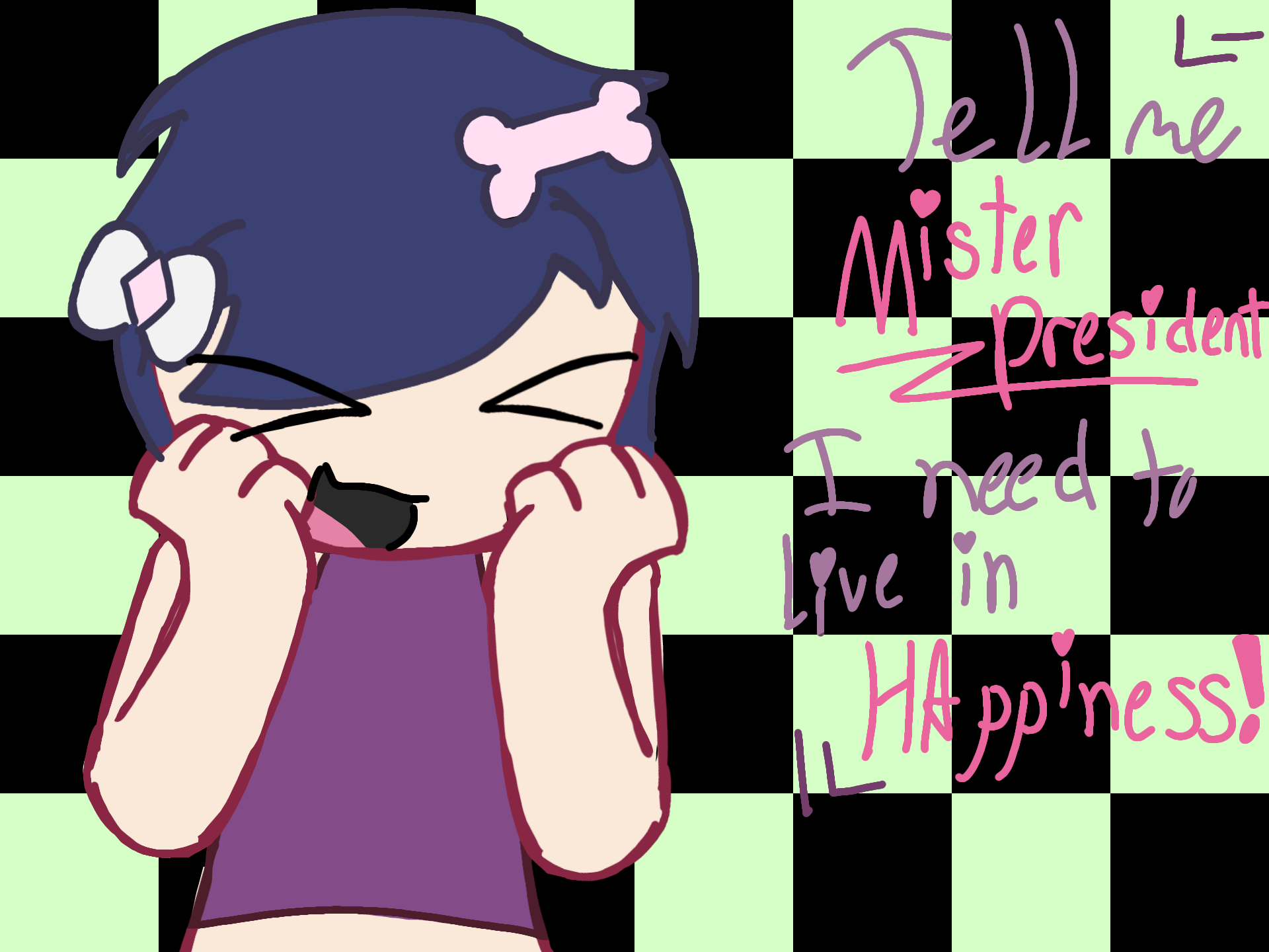 TELL ME MR PRESIDENT…I NEED TO LIVE IN HAPPINESS!¡!i might try to animate this ^^RLLY PROUD OF IT!!!………i finished shadingAND I HAD THE FUCΚΙΝ SAVE GLITCH GRGRRGGRGRGR
