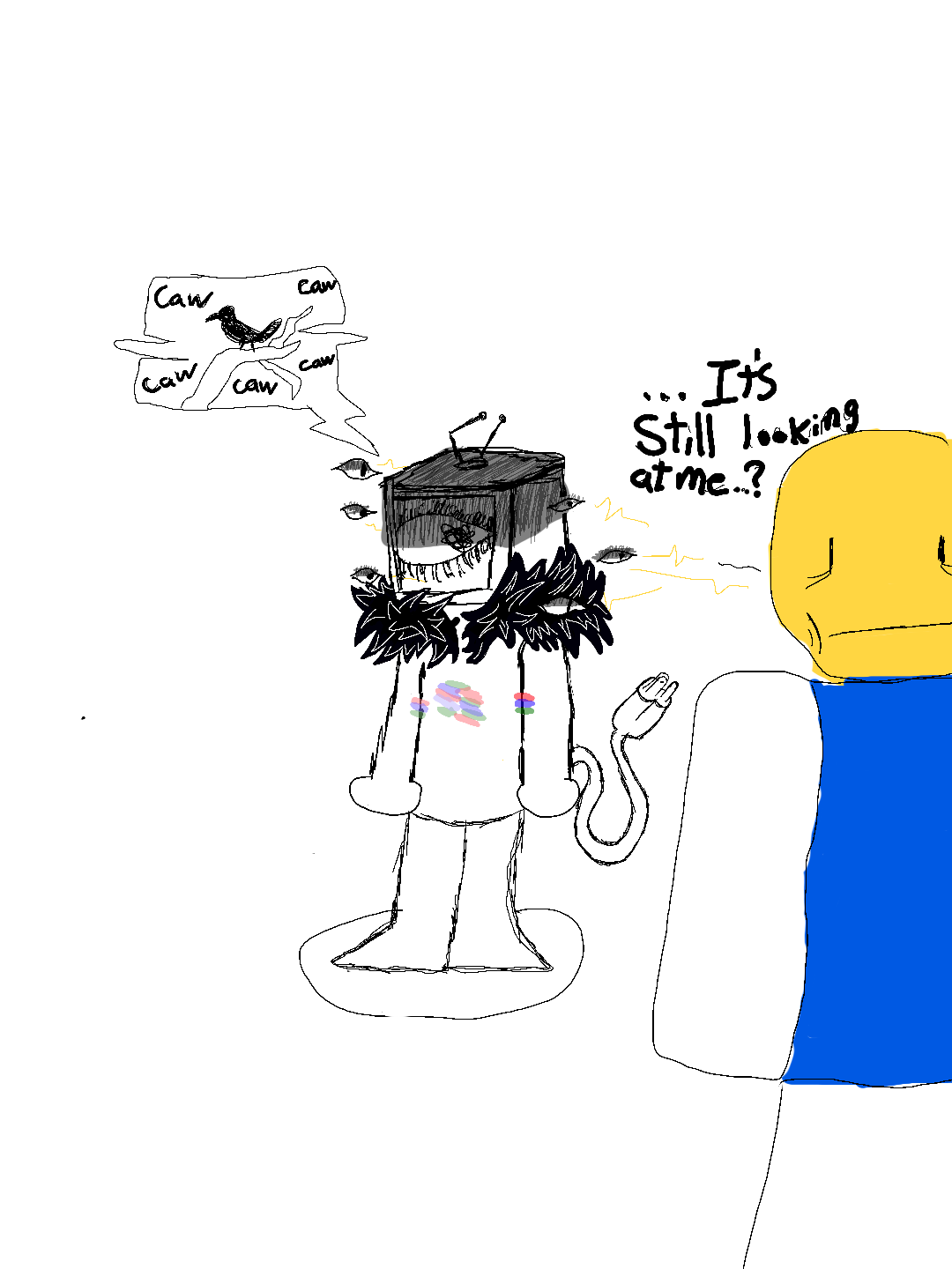 anyone see this #roblox avatar thats a tv heah with an eye I can never tell if hes trully looking at me #RobloxAvatar #Tveyesman