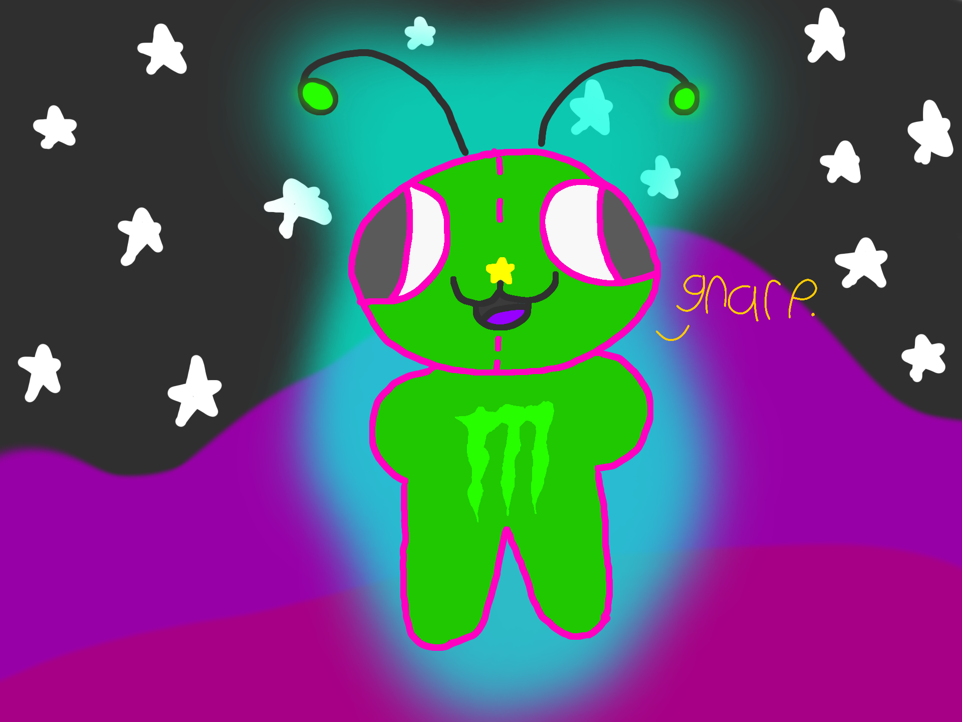 This is your new pet gnarp gnarp alien, from the Ikea Alien planet, feed it empty Monster cans when its hungry, it loves those. It will glow at night and sing covers of songs you like in the gnarp gnarp language to put you to sleep. you can choose every lil detail about your alien, name, birthday, pronouns, its all up to you! happy birthday!