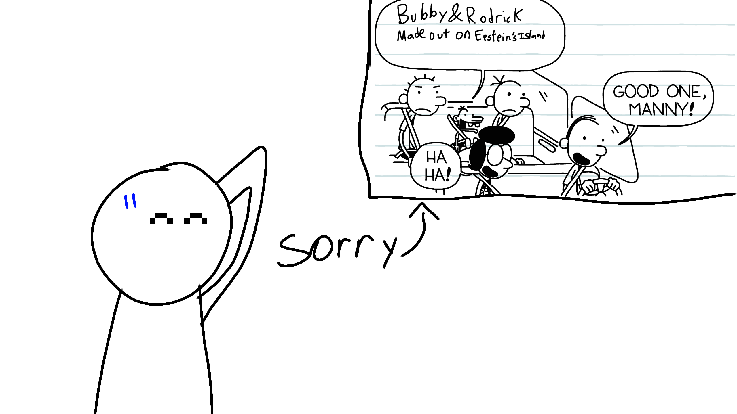 If you didn't know, a while back i made a post containing an Epstein joke. I wanted to apologize for it because i didn't know the horrific actions that were done on the island at the time, now that i know what has happened on that island, i can 100% guarantee that i will no longer make these kinda jokes.