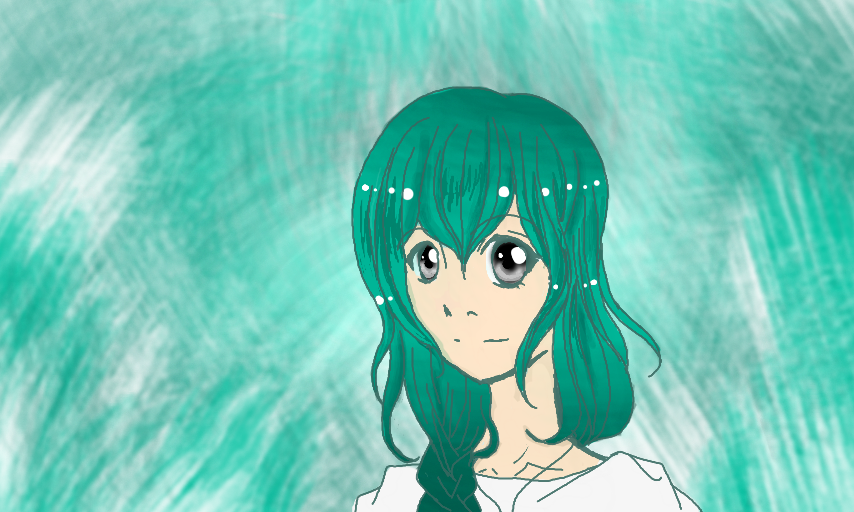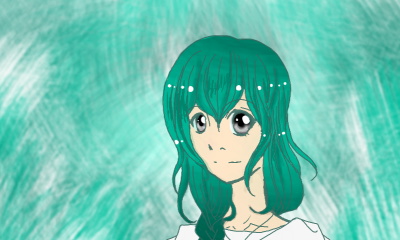 nice green hair..i gave u a star even tho im so tired of these half baked anime faces..no background, only the face and shoulders so no challenge, no auxilliary characters, no artistic message..i dunno..