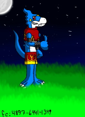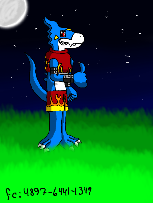 This is pyro the flamedramon's alternate outfit from the clothes i usually draw him in. i got the idea of another costume from playing games that let the characters change costumes like mortal kombat. now he is just wearing flamedramon themed shorts and his shirt that he wore in his flamedramon armor. I was bored so ill make more alternate outfits for my o.c digimon pyro the flamedramon, and also wolf the weregarurumon.