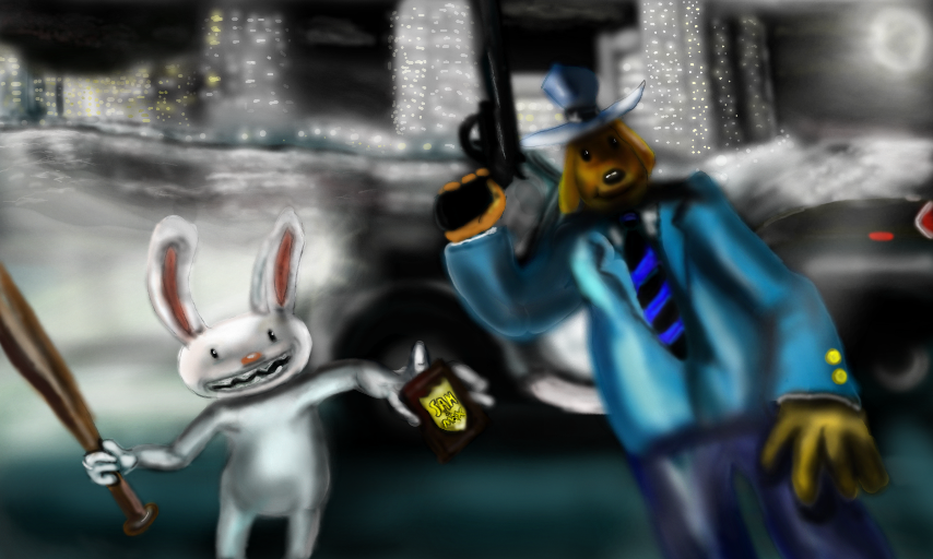 Ok this is done comment and I will find time to visit :] #sam #max #cityscape #lucasarts #lights #bunny #dog #bat #gun #freelance #police #lagomorph #fanart