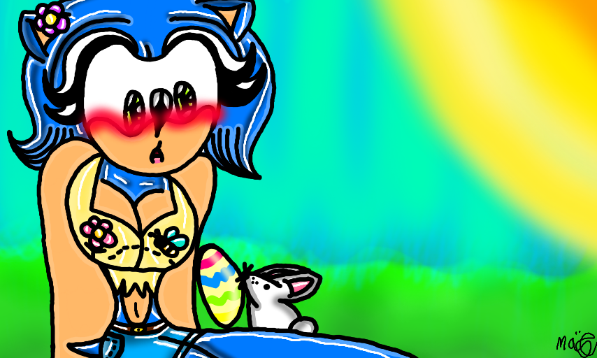 This Is So Too Cute Rabbit, Thes Eggs And Easter Beautifuil Colors. Thes Chocoaltes Maim.... Thes Flowers This Is So Too Beauty And Cute.Thank You "OMG"........!!!!!! -^_^-
