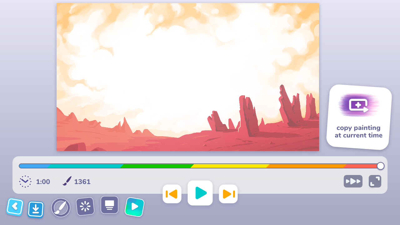 We’ve spent a lot of time trying to reproduce the playback bugs that have been impacting a lot of users and we’ve found a few issues related to the playback tab (the one where you can branch your painting from an earlier point in the playback). The first was triggered when you pressed the small “save&exit” button while playing back a painting, which caused all kinds of weirdness. The other was inconsistencies when playing back a painting on the playback tab – especially on a painting that was using the select&move tool. This could cause the playback to not match the painting, and if you branched your painting after this happen, you would save this error. Finally, if you branched your painting mid-stroke (something that might be hard to spot) a few different issues could appear. These issues are now fixed but take care when using the playback tab until v1.9 is released.